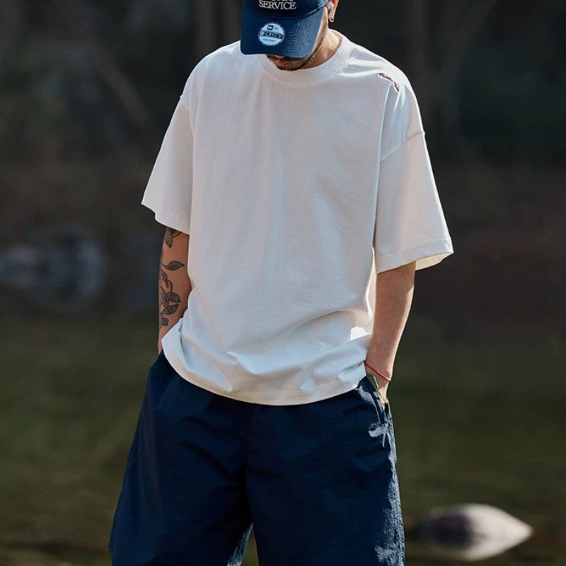 【商品管理番号】 M0002 【商品説明】 さりげない筆記体刺繍がポイントのオーバーサイズTシャツ。 ミニマルながら存在感のある一枚で、カジュアルにもストリートにもマッチします。シンプルだからこそ、ディテールが映える。毎日のコーデに溶け込みながら、ちょっとした個性をプラスしてくれる一着です。お好みのカラーを4色の中からお選びいただけます。 WHITE/BLACK/RED/NAVYBLUE 【サイズ】 【XS】肩幅:55cm / 胸囲:114cm / 着丈:70cm / 袖丈:19cm 【S】 肩幅:56cm / 胸囲:118cm / 着丈:72cm / 袖丈:20cm 【M】 肩幅:57cm / 胸囲:122cm / 着丈:74cm / 袖丈:21cm 【L】 肩幅:58cm / 胸囲:126cm / 着丈:76cm / 袖丈:22cm 【XL】肩幅:59cm / 胸囲:130cm / 着丈:78cm / 袖丈:23cm モデル身長:173㎝/体重:63㎏/着用サイズ:Mサイズ ※サイズは測り方により1-3㎝の誤差が生じる場合がございます。 【素材】 cotton100%