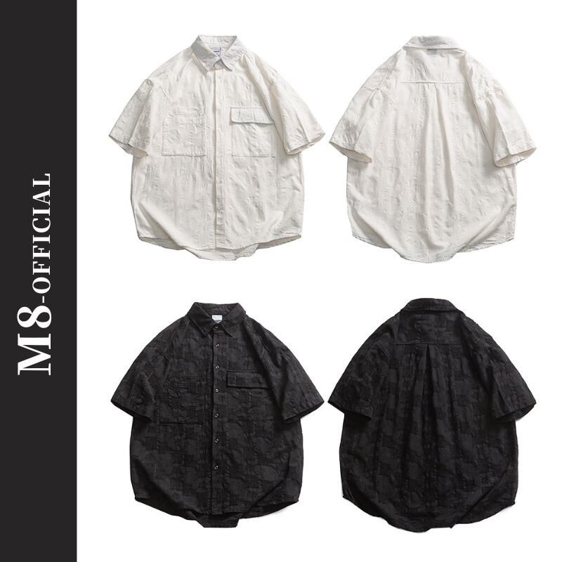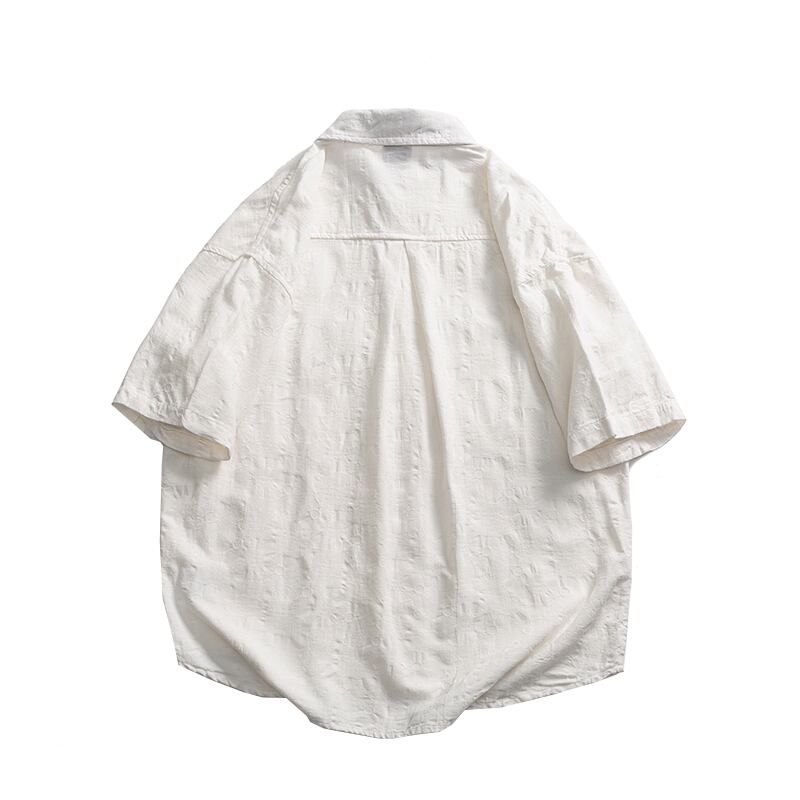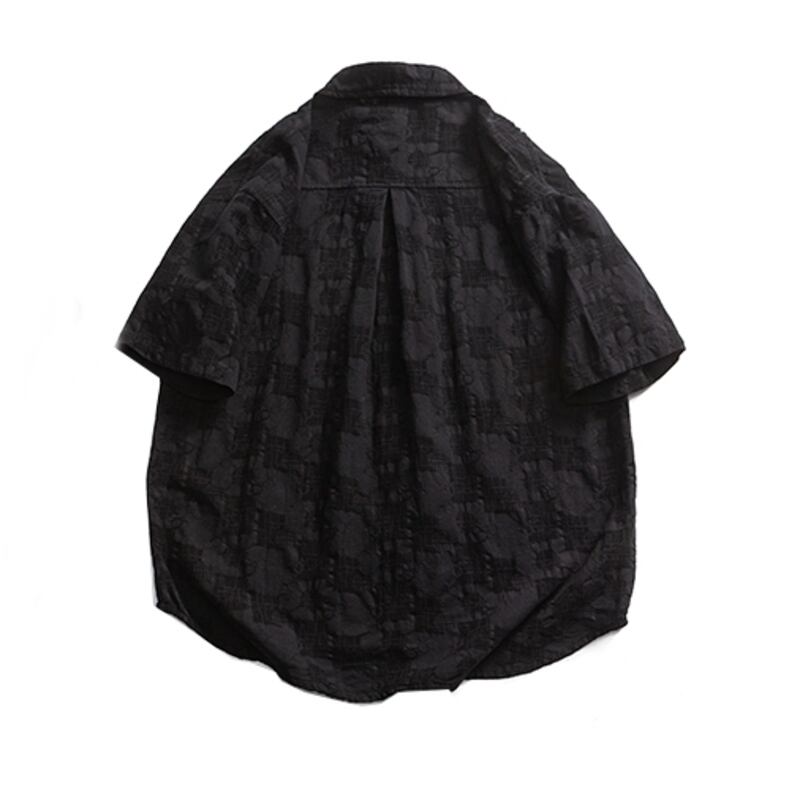 【商品管理番号】 M0051 【商品説明】 幾何学パターンのエンボス加工が施された、こなれたデザインのオーバーサイズシャツです。ラフでありながら洗練された印象を与える一枚は、リラックスした着心地を実現します。ユニークなおしゃれが楽しめるため、デイリースタイルやカジュアルなシーンで大活躍すること間違いなし!さまざまなボトムスと合わせやすいのも魅力です。 WHITE/BLACK 【サイズ】 【M】肩幅:53cm / 胸囲:114cm / 着丈:76cm / 袖丈:25cm 【L】肩幅:54cm / 胸囲:118cm / 着丈:78cm / 袖丈:25cm 【XL】肩幅:55cm / 胸囲:122cm / 着丈:80cm / 袖丈:26cm 【2XL】肩幅:56cm / 胸囲:126cm / 着丈:82cm / 袖丈:26cm ※サイズは測り方により1-3㎝の誤差が生じる場合がございます。 【素材】 cotton60%/rayon40%