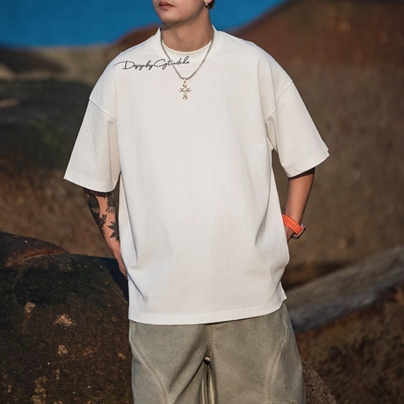 【商品管理番号】 M0031 【商品説明】 デコルテのレタリングのメッセージが印象的なオーバーサイズTシャツが登場!リラックス感のあるシルエットが特徴で、カジュアルなのにどこかオシャレな一着です。デイリーコーデはもちろん、友達とのお出かけシーンにもぴったりで、着回し力が非常に高いアイテムです。お好きなカラーであなたらしいスタイルを楽しんでください。 BLACK/WHITE 【サイズ】 【M】肩幅:61.6cm / 胸囲:118cm / 着丈:68cm / 袖丈:21cm 【L】肩幅:62.8cm / 胸囲:122cm / 着丈:70cm / 袖丈:21.5cm 【XL】肩幅:64cm / 胸囲:126cm / 着丈:72cm / 袖丈:22cm 【2XL】肩幅:65.2cm / 胸囲:130cm / 着丈:74cm / 袖丈:22.5cm モデル身長:175㎝/体重:65㎏/着用サイズ:Lサイズ ※サイズは測り方により1-3㎝の誤差が生じる場合がございます。 【素材】 cotton100%