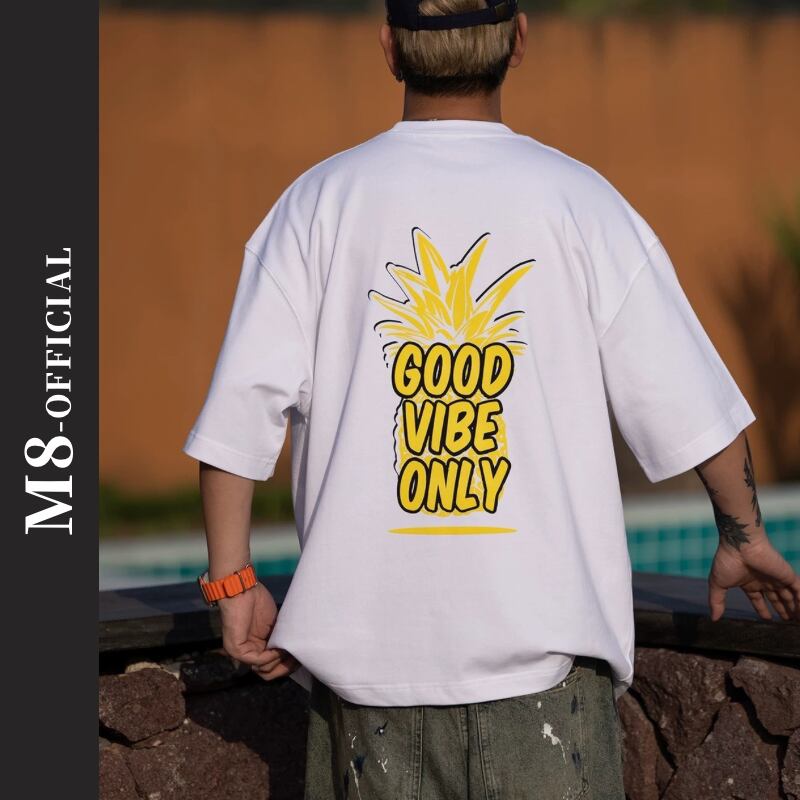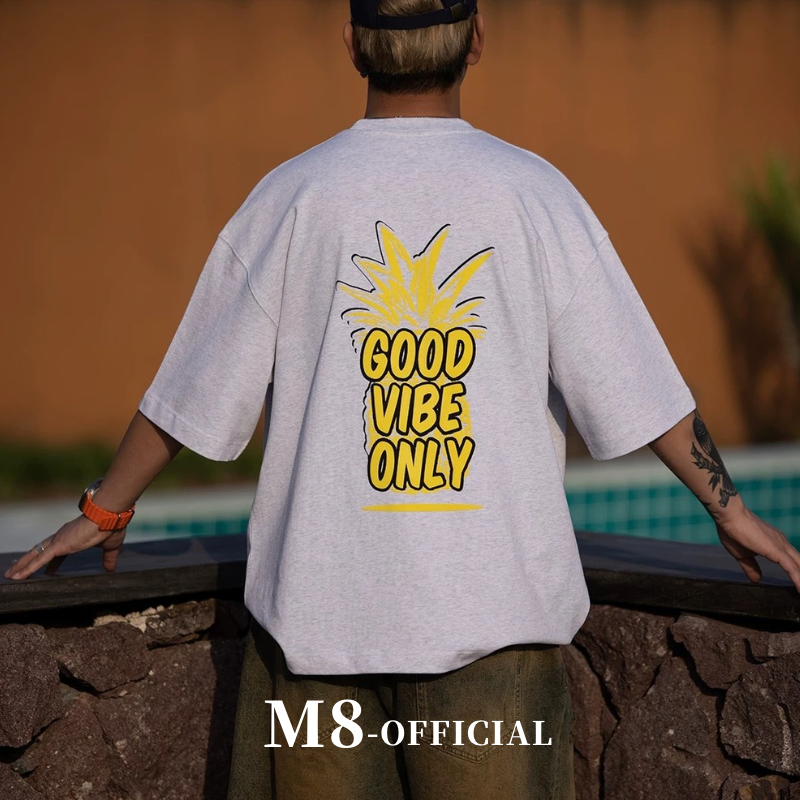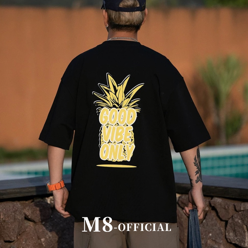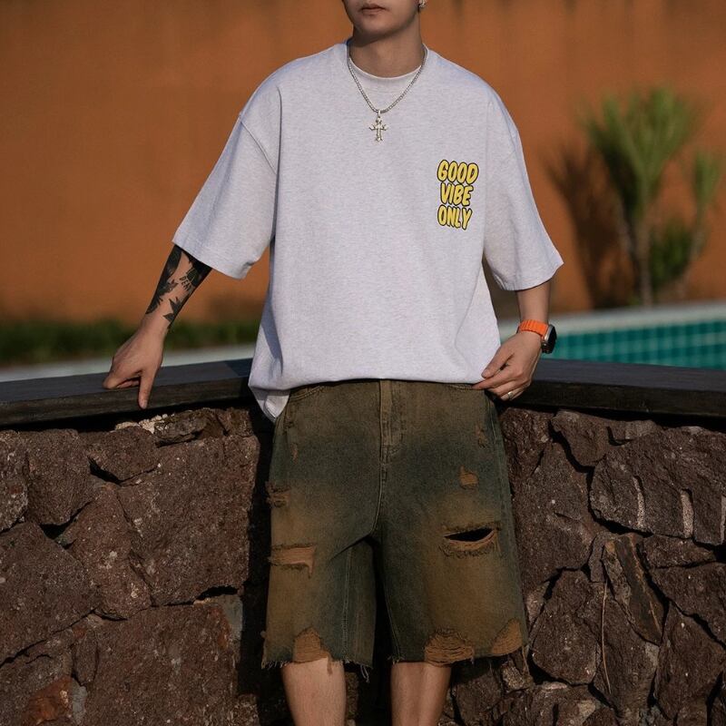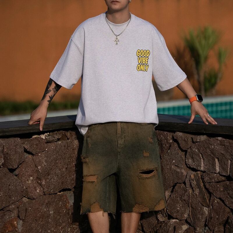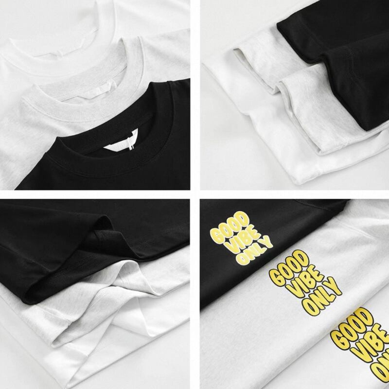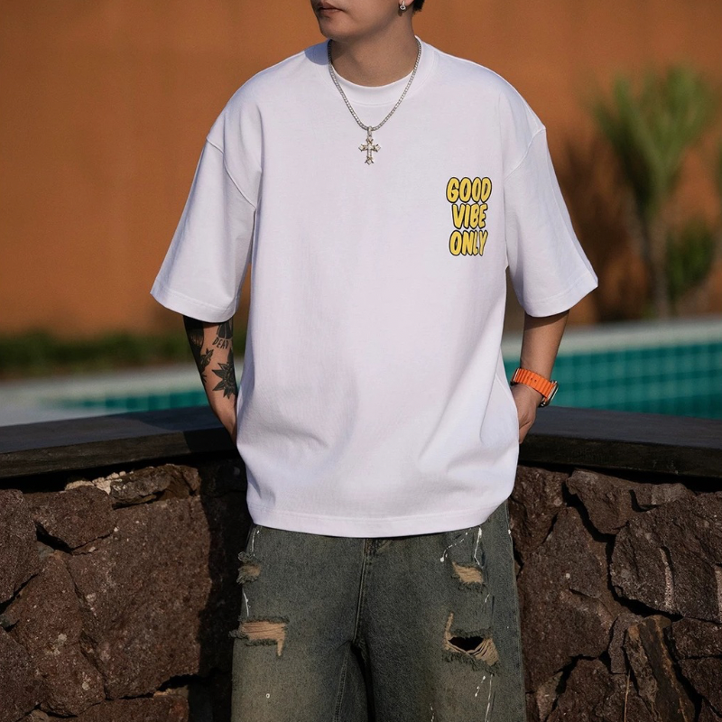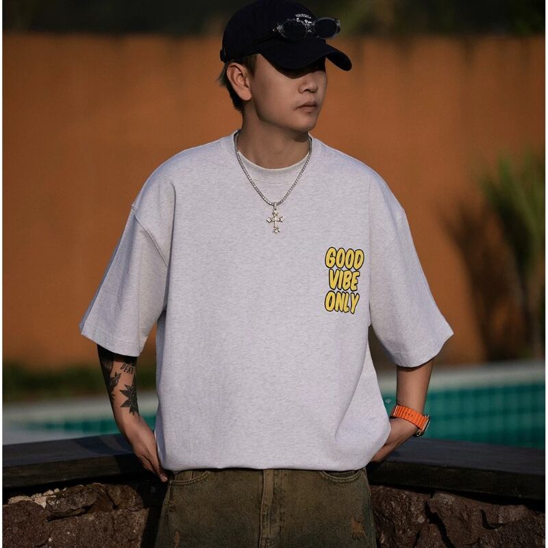 独特のバックプリントが目を引く、レトロな雰囲気のTシャツです。胸元と背中に施された黄色い文字がアクセントとなり、カジュアルながら個性的なスタイルを演出します。デイリーユースはもちろん、おしゃれなコーディネートの主役としても活躍する一着です。シンプルなボトムスと合わせるだけで、こなれた感じを楽しむことができます。