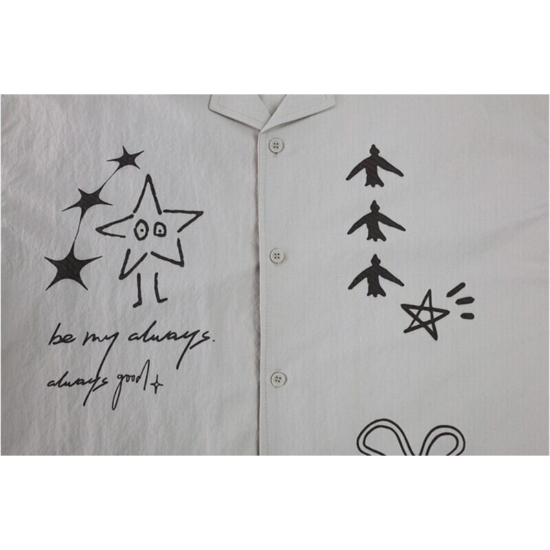 printed open collar oversized shirt M0222
