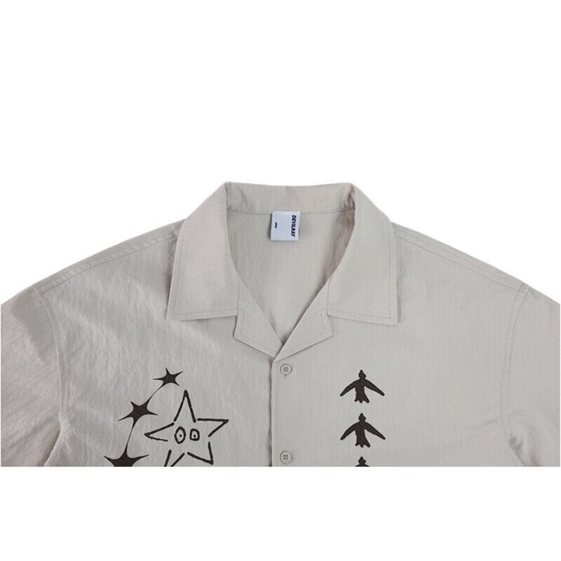 絶妙なヴィンテージ調のプリントがこなれた、オーバーサイズの開襟シャツです。リラックスしたシルエットが特徴で、カジュアルでありながらエレガントな印象を与えます。デイリーコーデにはもちろん、特別な日のお洒落にもぴったり。さまざまなスタイルで自由に着こなして、自分だけのファッションを楽しんでください。