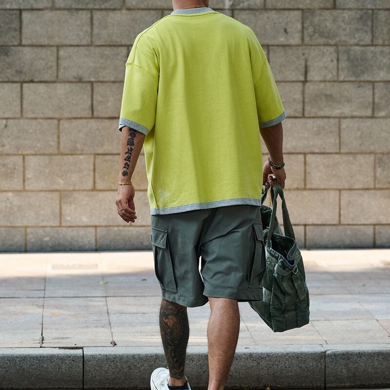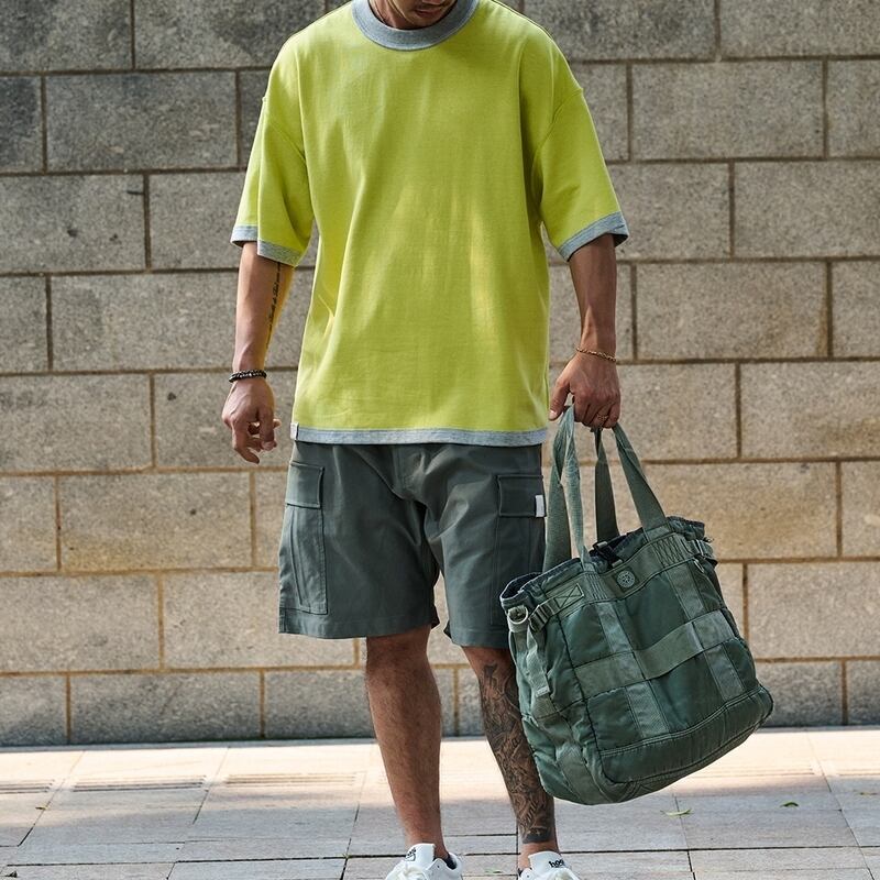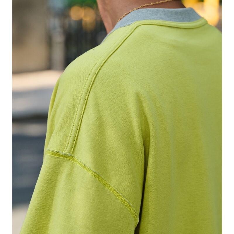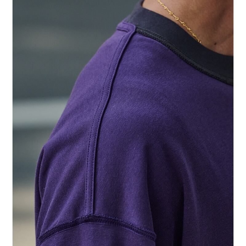 バイカラーのレイヤード風デザインが魅力のオーバーサイズTシャツ。リバーシブルで楽しめて、フロントにはさりげないワンポイントが施されたシンプルなデザインです。リラックスしたオーバーサイズシルエットがカジュアルスタイルを引き立て、さまざまなシーンに対応できる一枚です。