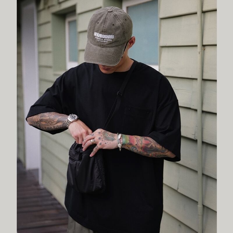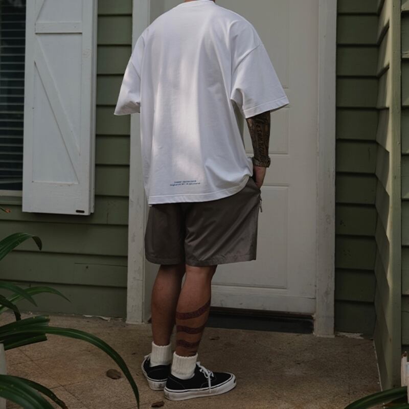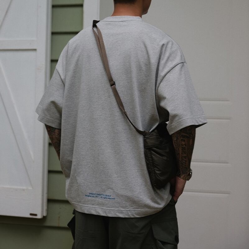 パッチポケットがアクセントとなったおしゃれなオーバーサイズTシャツが入荷しました!ドロップショルダーのオーバーサイズデザインにより、リラックス感がありながらもスタイリッシュな印象を与えます。バックのさりげないプリントがこなれた印象で、幅広いコーディネートに活躍するアイテムです。