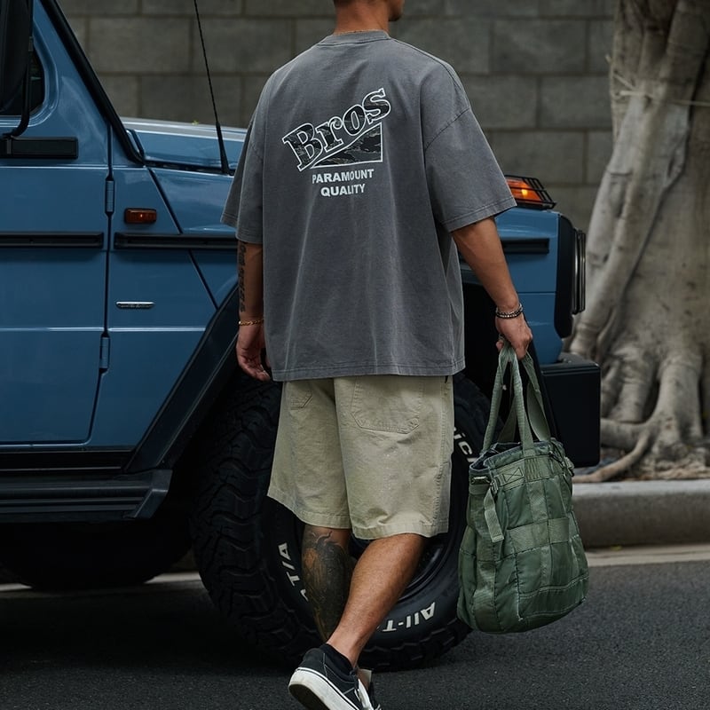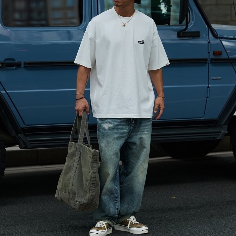 背中にレトロなロゴプリントを施したオーバーサイズTシャツ。フロントにはシンプルなワンポイントプリントとパッチ付きで、さりげないアクセントに。リラックスしたオーバーサイズシルエットがカジュアルスタイルを引き立て、普段使いや特別な日のコーディネートにもぴったり。