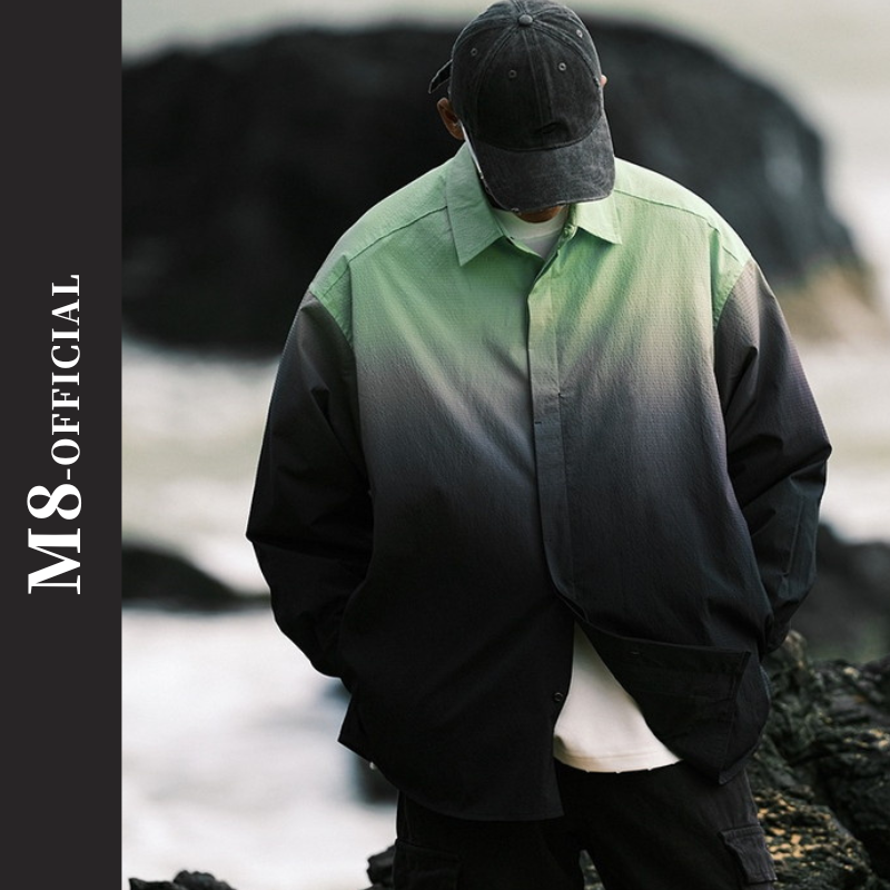 【商品管理番号】 M0171 【商品説明】 グラデーションデザインが特徴のフライフロントシャツ。 シンプルながらもポップな色合いが魅力で、さまざまなスタイルにマッチします。 リラックスしたフィット感が心地よく、デイリーユースから特別な日のコーディネートまで多彩に活躍する一着です。 おしゃれを楽しむあなたにぴったりなアイテムです! GREEN 【サイズ】 【M】肩幅:56.9cm / 胸囲:132cm / 着丈:80cm / 袖丈:54cm 【L】肩幅:58.1cm / 胸囲:136cm / 着丈:81.5cm / 袖丈:55cm 【XL】肩幅:59.3cm / 胸囲:140cm / 着丈:83cm / 袖丈:56cm 【2XL】肩幅:60.5cm / 胸囲:144cm / 着丈:84.5cm / 袖丈:57cm モデル身長:175㎝/体重:57.5㎏/着用サイズ:Lサイズ ※サイズは測り方により1-3㎝の誤差が生じる場合がございます。 【素材】 polyester100%