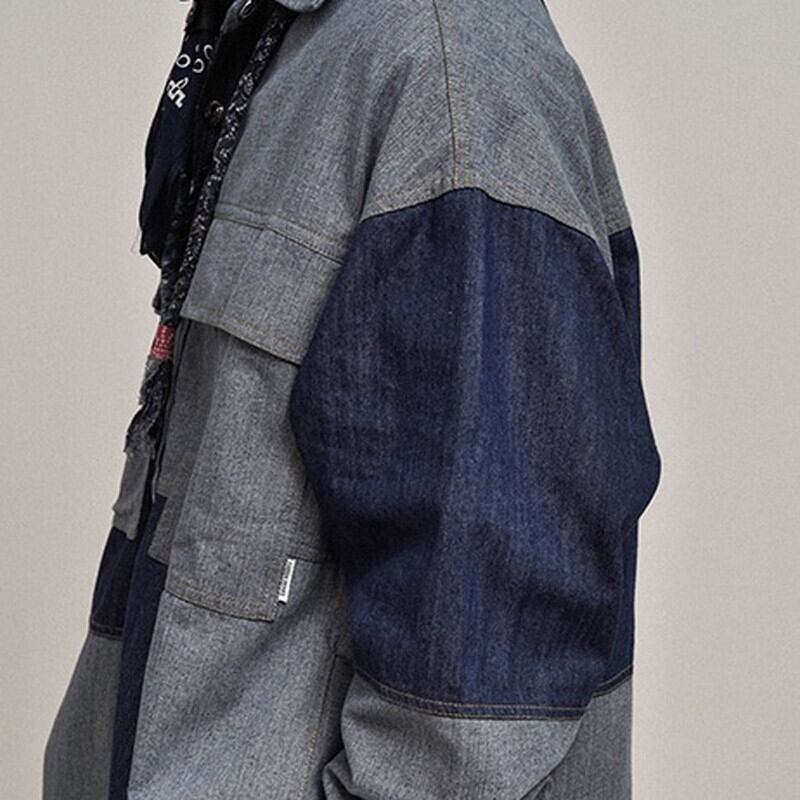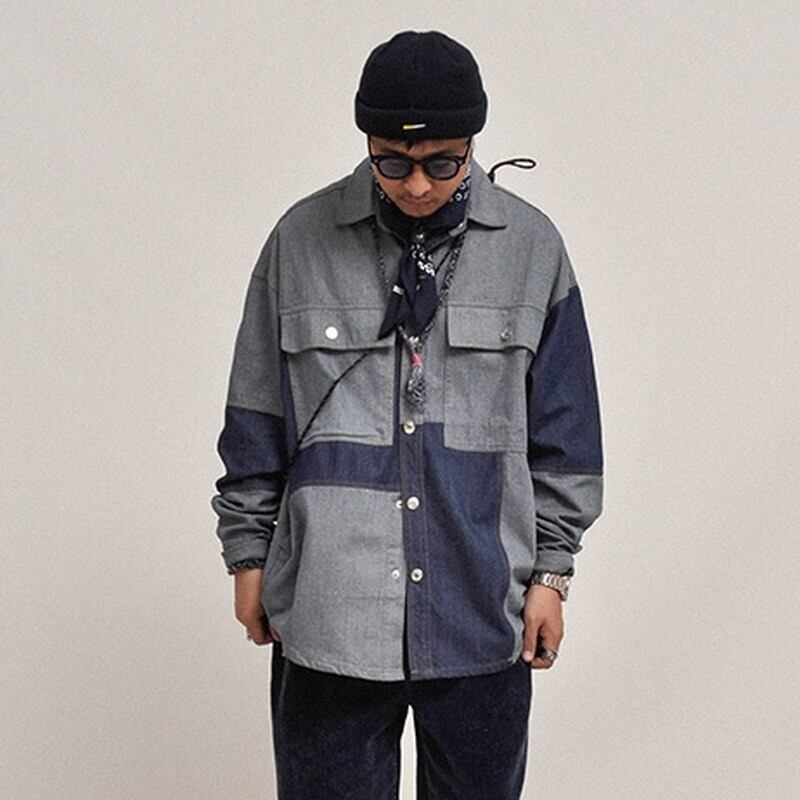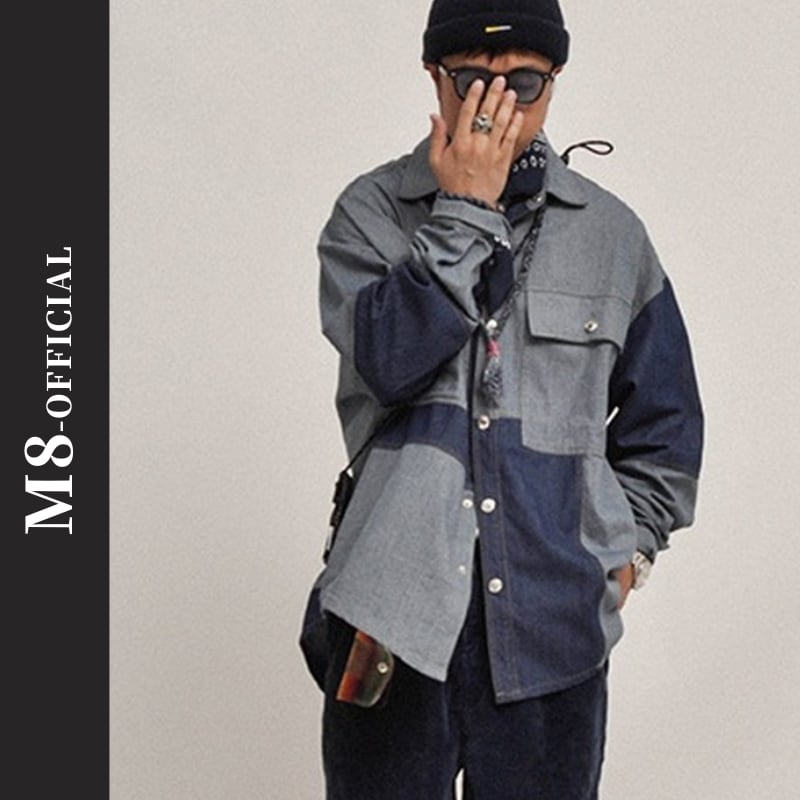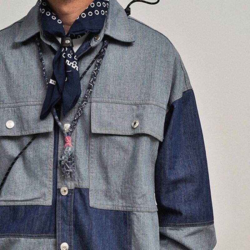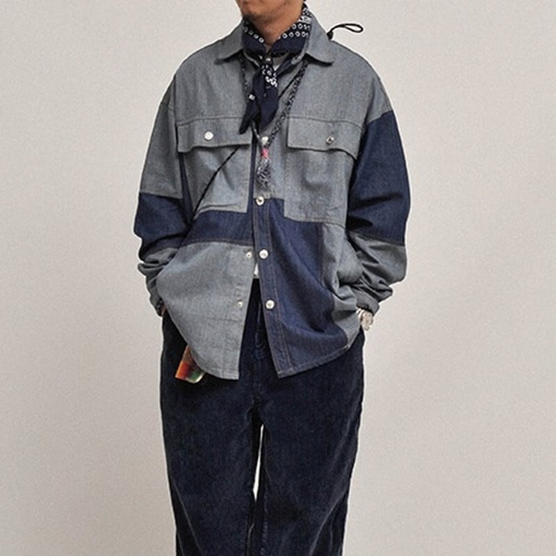 個性的なパッチワークデザインが印象的なアシンメトリーシャツです。