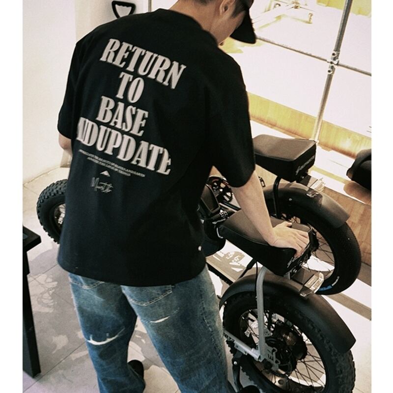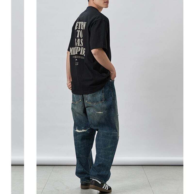 背中に大きくポップなレタリングプリントを施したTシャツ。フロントにはシンプルなパッチポケット付きで、さりげないアクセントに。リラックスしたオーバーサイズシルエットがカジュアルスタイルを引き立て、普段使いや特別な日のコーディネートにもぴったり。