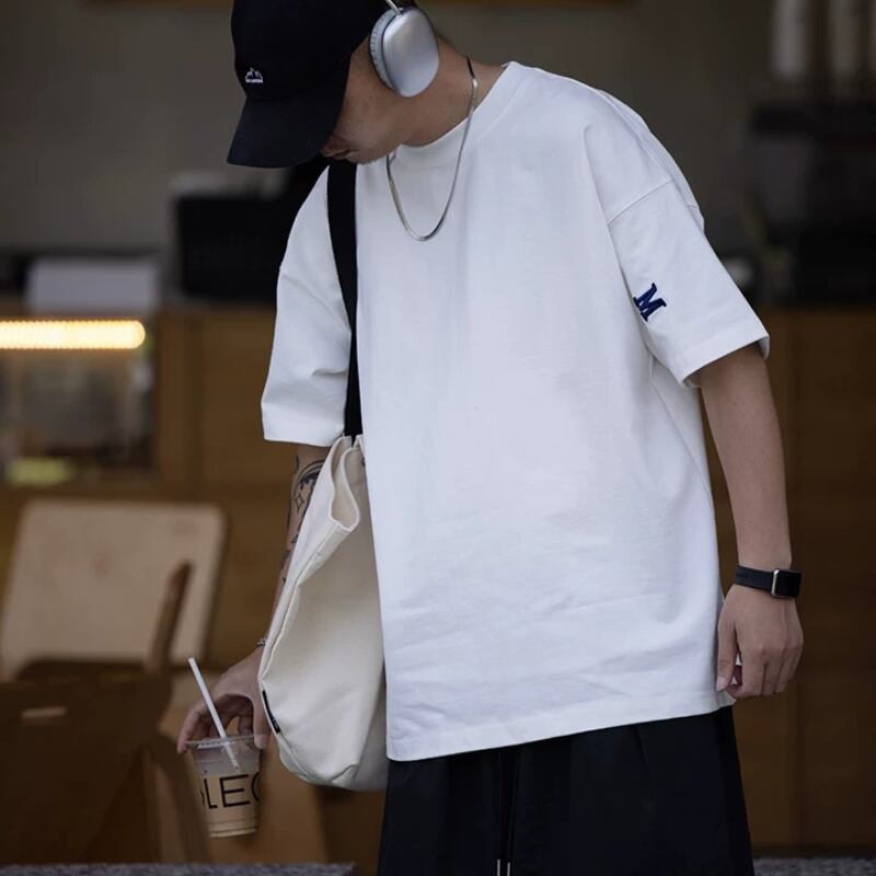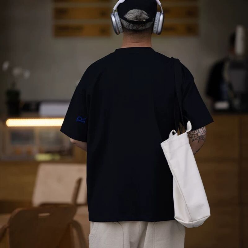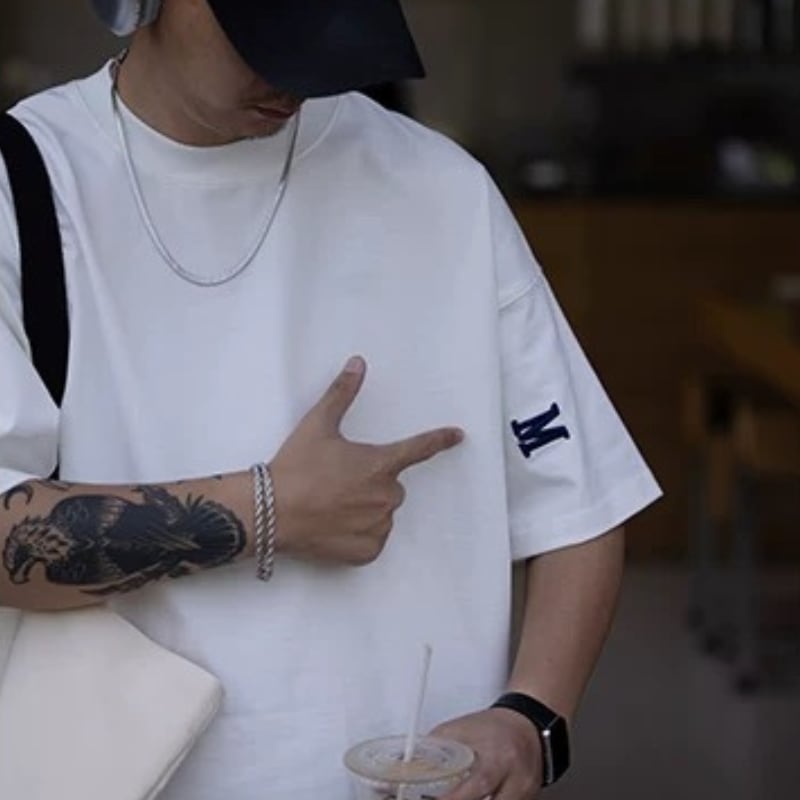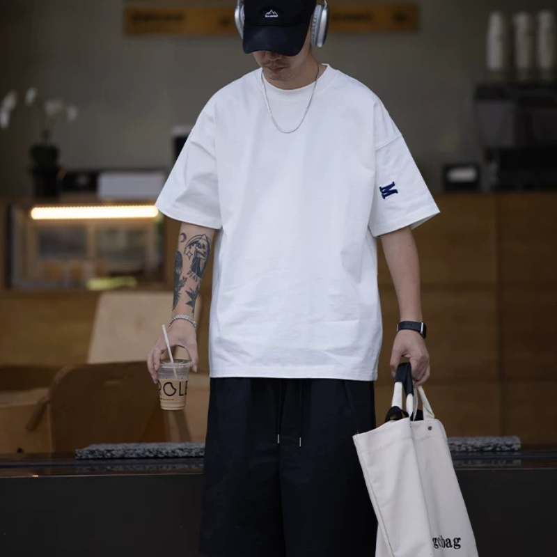 袖に施されたレターパッチ刺繍がアクセントになったTシャツ。シンプルなボディに個性的なワンポイントが映え、カジュアルながらも遊び心のあるスタイルを演出します。ゆったりとしたシルエットで、デイリーコーデにも取り入れやすい一枚です。