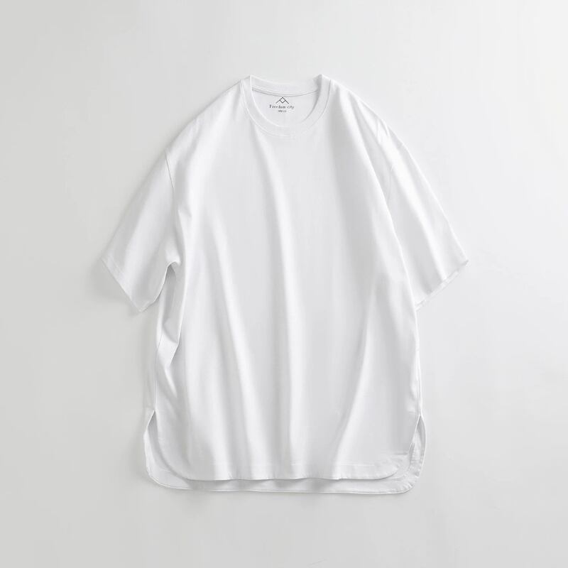 シンプルな中に上品さを感じるTシャツ。ほどよくゆったりとしたシルエットで、リラックス感のある着心地です。裾にあしらったミニマルなタグが、さりげないアクセントに。カジュアルからきれいめまで、幅広いコーディネートにマッチします。