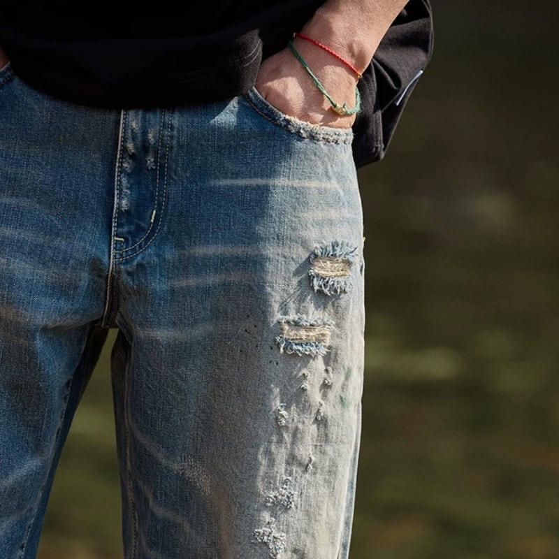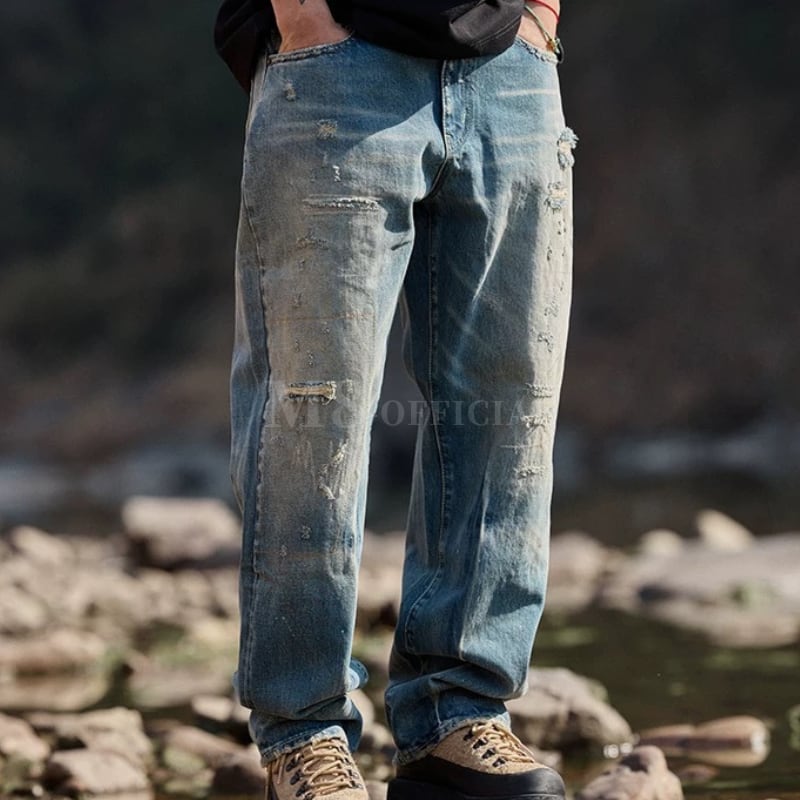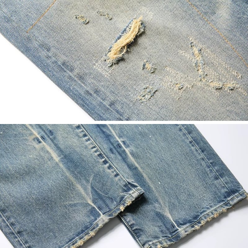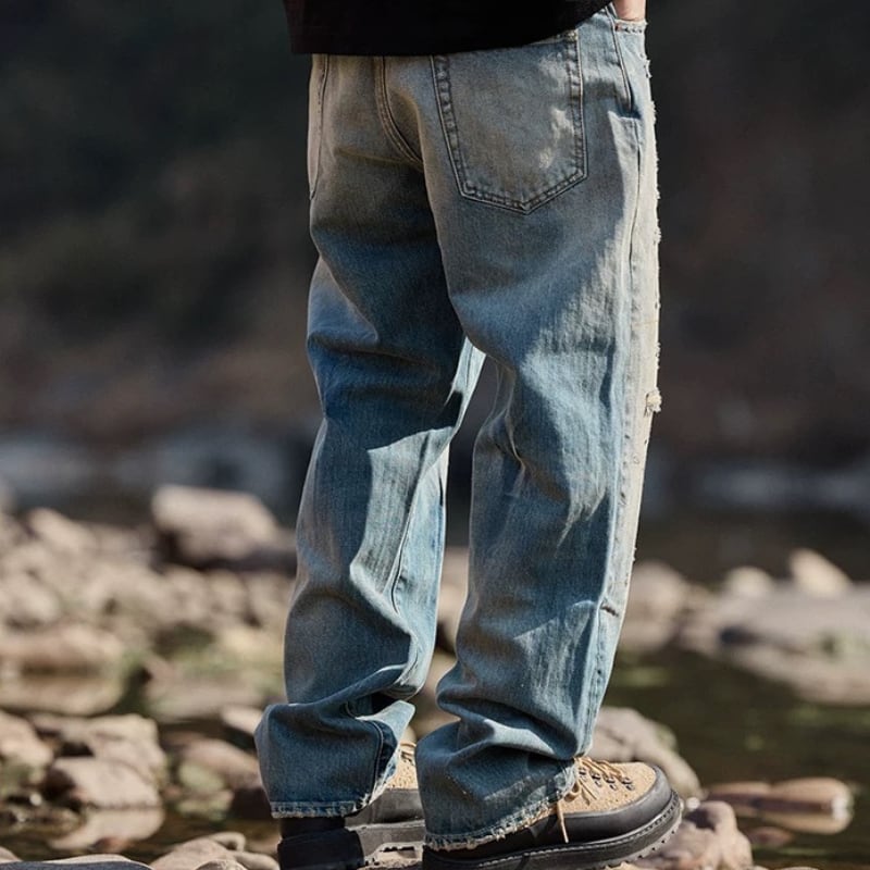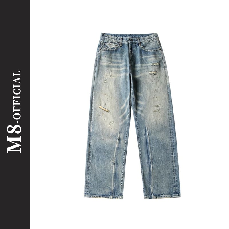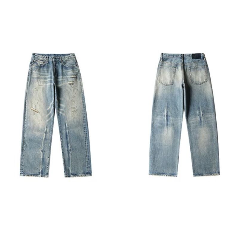 【商品管理番号】 M0152 【商品説明】 ダメージ加工を施したストレートデニムパンツ。色落ちや擦れ感がこなれた印象を与え、カジュアルな着こなしにぴったり。程よいゆとりのあるストレートシルエットで、リラックス感のある履き心地です。 シンプルなトップスに合わせるだけで、抜け感のあるスタイルが完成します。 【サイズ】 【S】 ウエスト:80cm / 着丈:102cm / ヒップ:109cm / 裾まわり:41cm 【M】 ウエスト:84cm / 着丈:103cm / ヒップ:114cm / 裾まわり:42cm 【L】 ウエスト:88cm / 着丈:104cm / ヒップ:118cm / 裾まわり:43cm 【XL】 ウエスト:92cm / 着丈:105cm / ヒップ:122cm / 裾まわり:44cm モデル身長:173㎝/体重:63㎏/着用サイズ:Sサイズ ※サイズは測り方により1-3㎝の誤差が生じる場合がございます。 【素材】 cotton100%