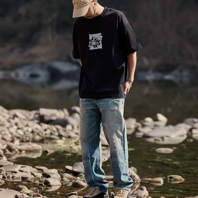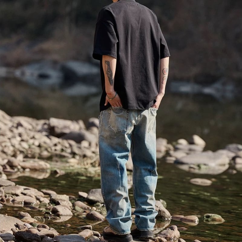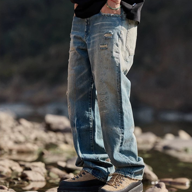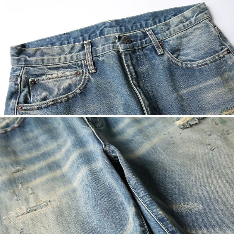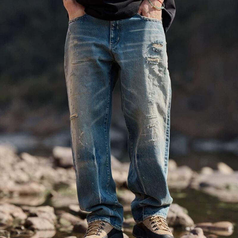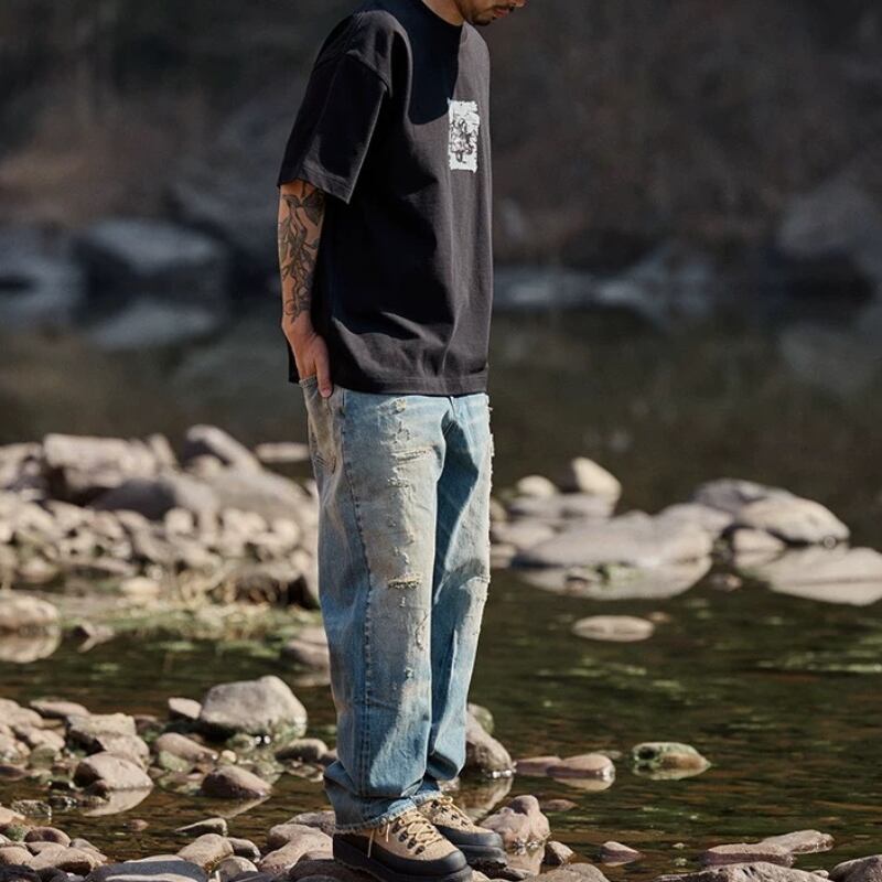 【商品管理番号】 M0152 【商品説明】 ダメージ加工を施したストレートデニムパンツ。色落ちや擦れ感がこなれた印象を与え、カジュアルな着こなしにぴったり。程よいゆとりのあるストレートシルエットで、リラックス感のある履き心地です。 シンプルなトップスに合わせるだけで、抜け感のあるスタイルが完成します。 【サイズ】 【S】 ウエスト:80cm / 着丈:102cm / ヒップ:109cm / 裾まわり:41cm 【M】 ウエスト:84cm / 着丈:103cm / ヒップ:114cm / 裾まわり:42cm 【L】 ウエスト:88cm / 着丈:104cm / ヒップ:118cm / 裾まわり:43cm 【XL】 ウエスト:92cm / 着丈:105cm / ヒップ:122cm / 裾まわり:44cm モデル身長:173㎝/体重:63㎏/着用サイズ:Sサイズ ※サイズは測り方により1-3㎝の誤差が生じる場合がございます。 【素材】 cotton100%