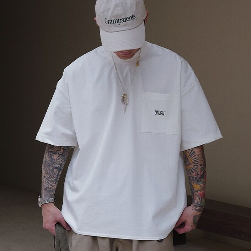 ワンポイントの胸ポケットが特徴的なオーバーサイズTシャツです。