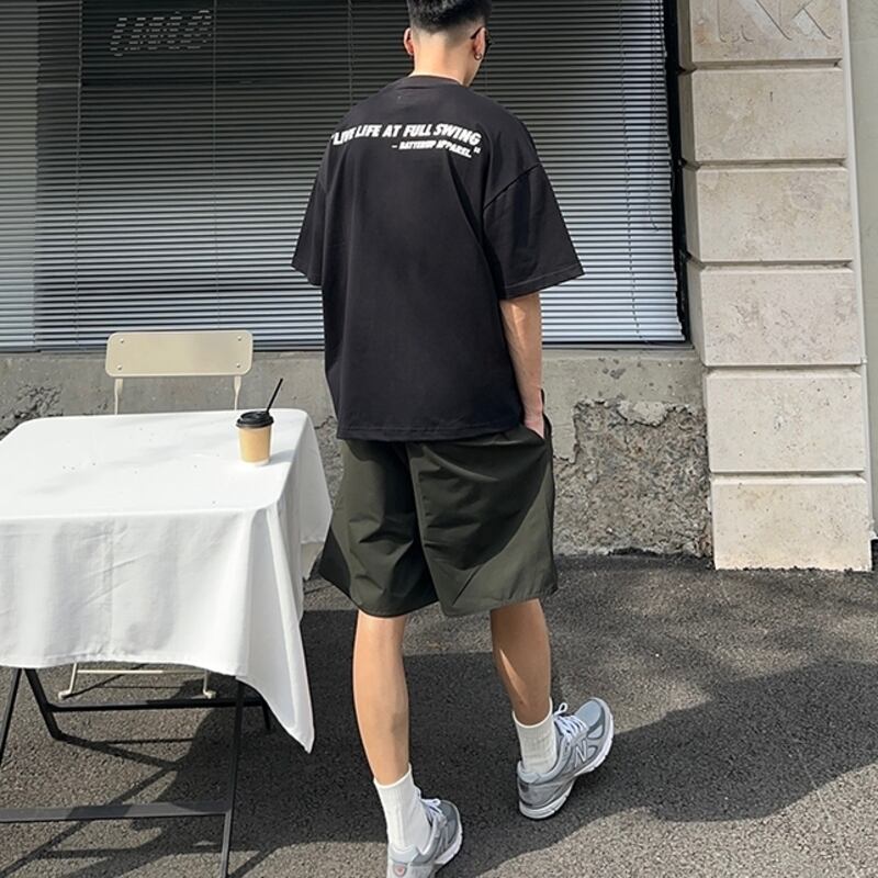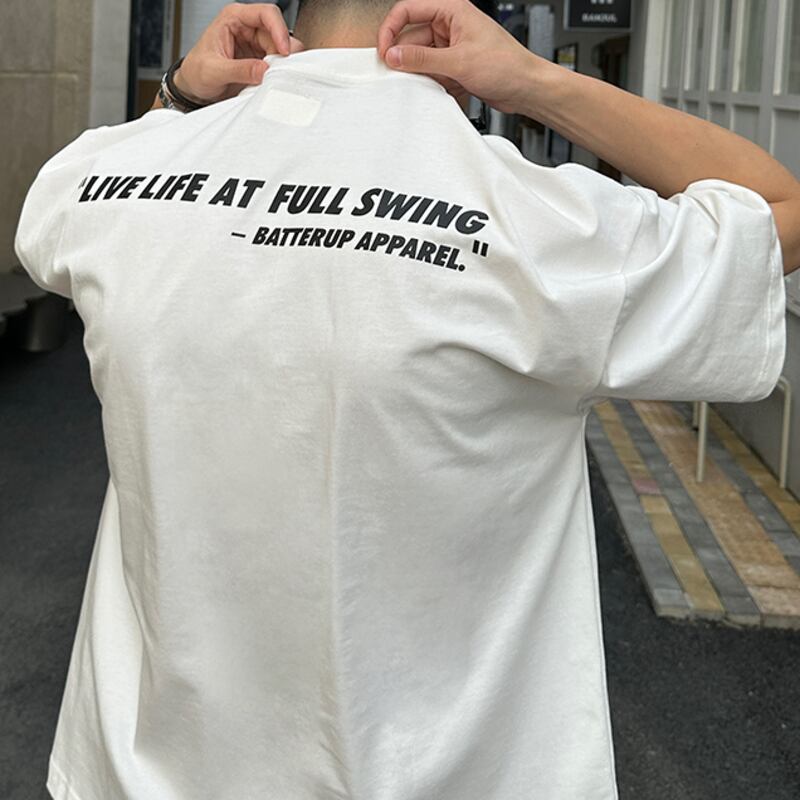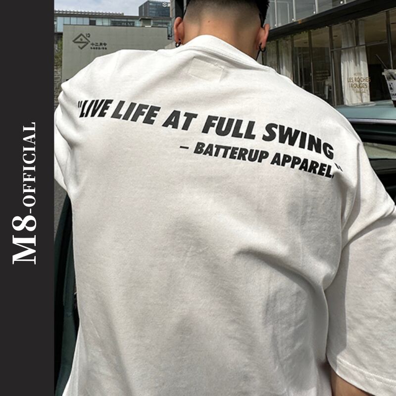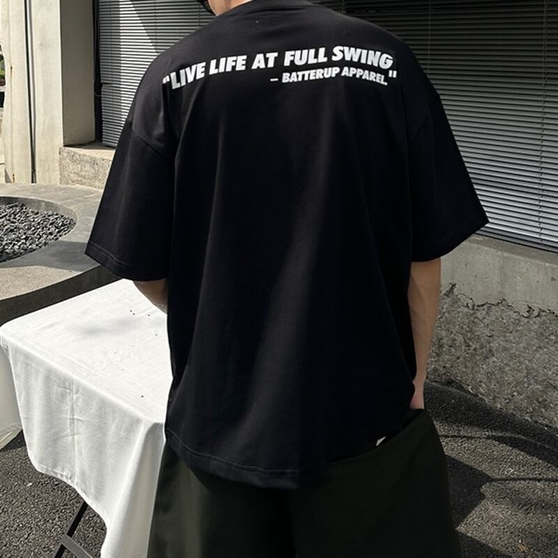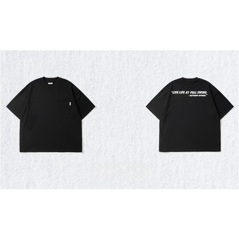 背中にレタリングプリントを施したオーバーサイズTシャツ。フロントにはシンプルなワンポイントパッチポケット付きで、さりげないアクセントに。リラックスしたオーバーサイズシルエットがカジュアルスタイルを引き立て、普段使いや特別な日のコーディネートにもぴったり。