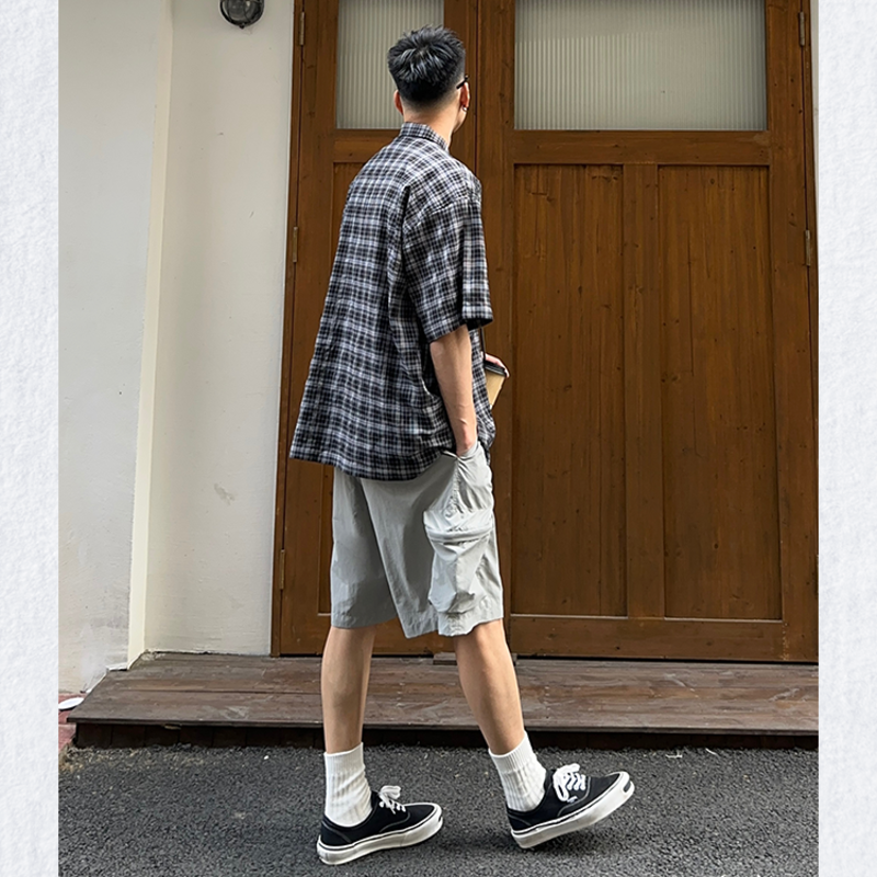 checked pattern oversized shirt M0232