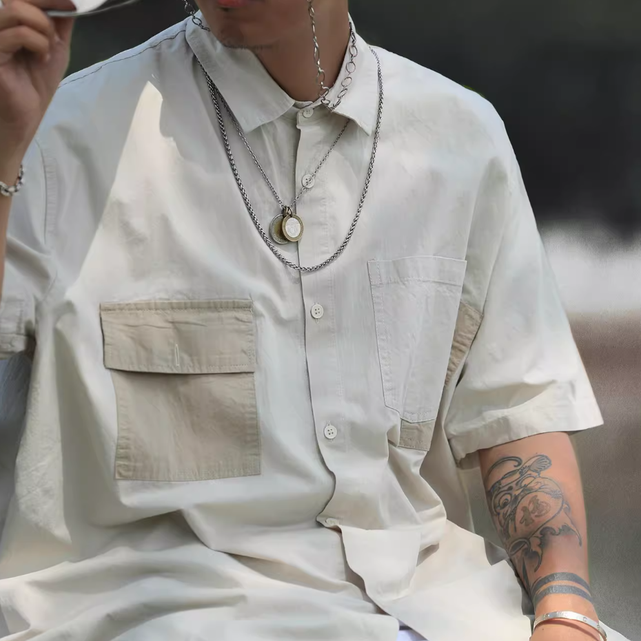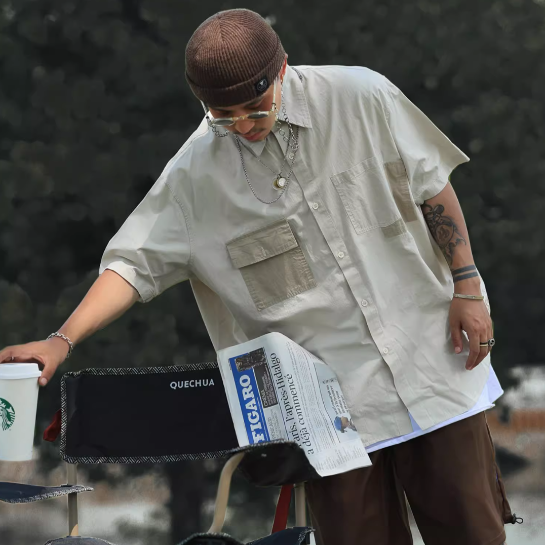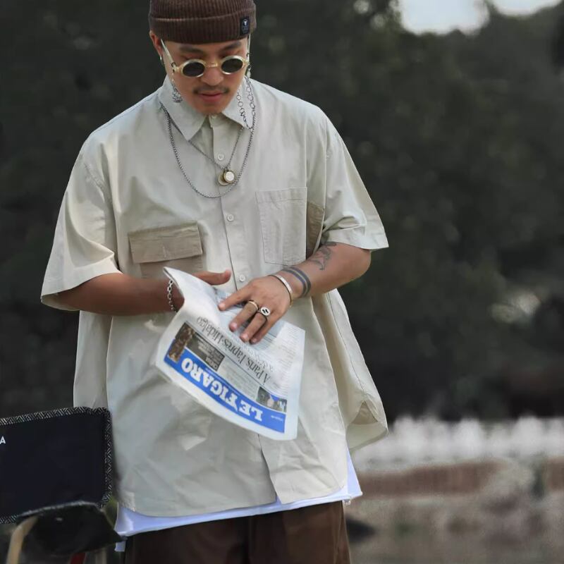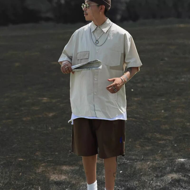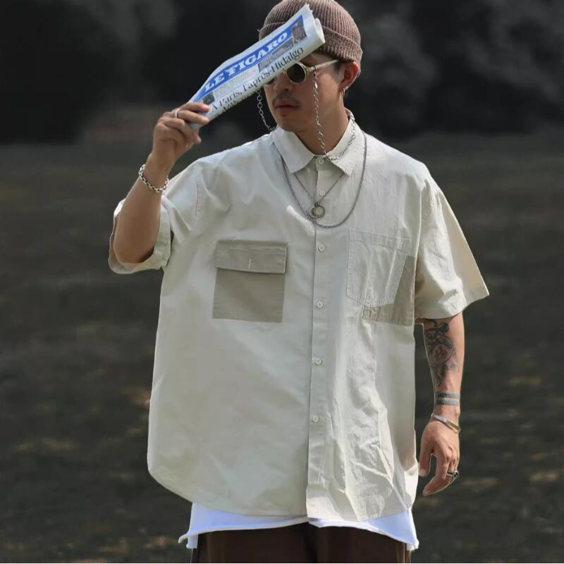 リラックス感あふれるカジュアルな雰囲気が魅力の半袖シャツが登場しました!ポケット付きのデザインで、実用性も兼ね備えています。シンプルながらも個性的なスタイルを演出し、デイリーユースにぴったりなアイテムです!