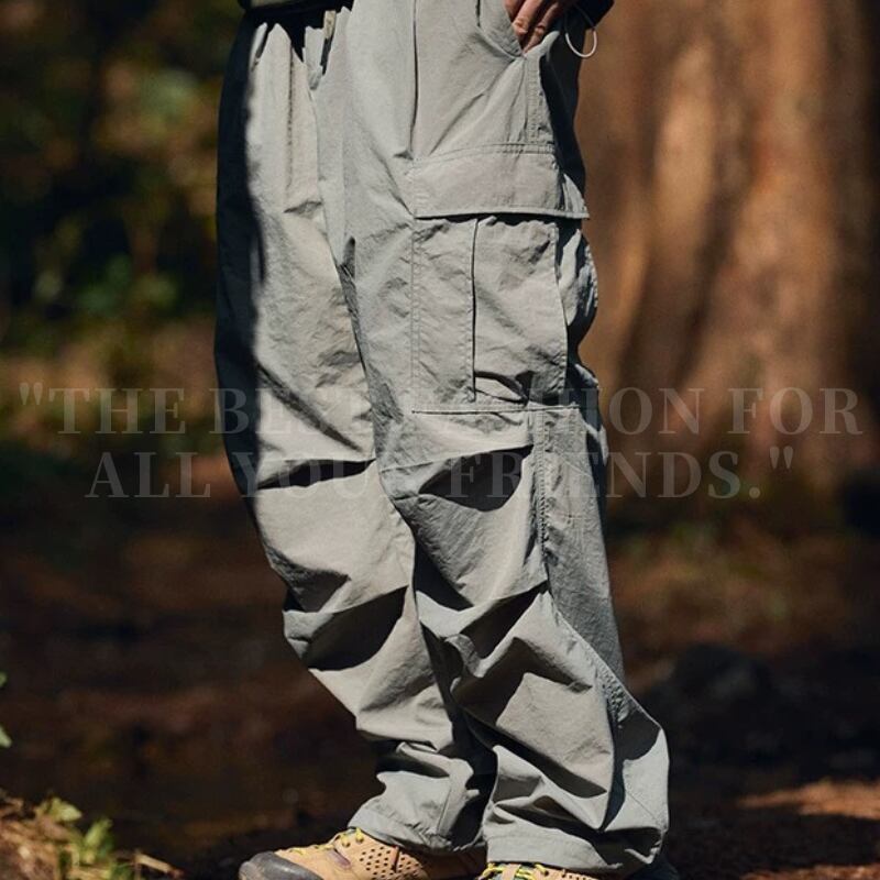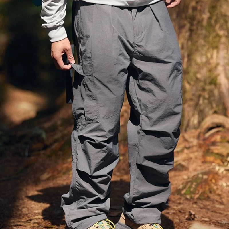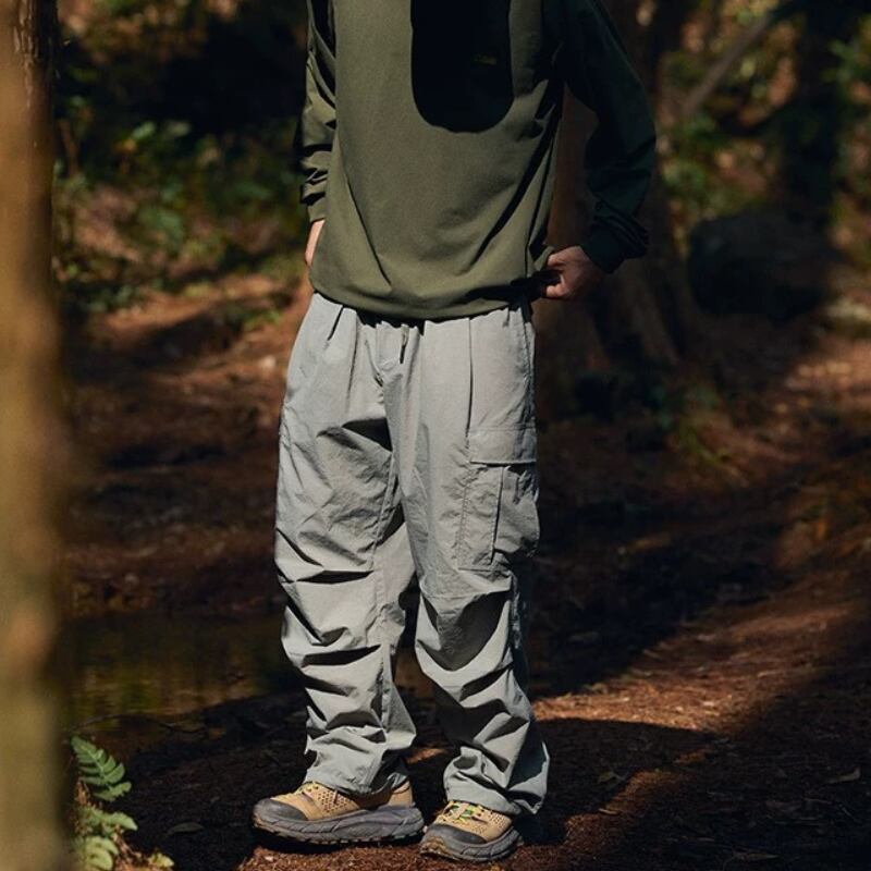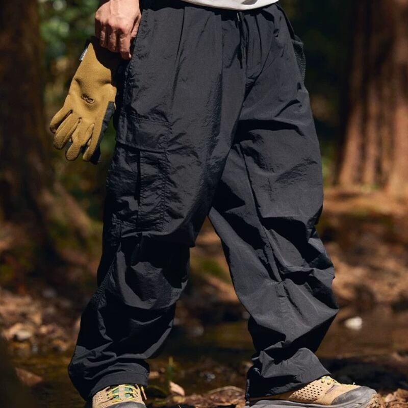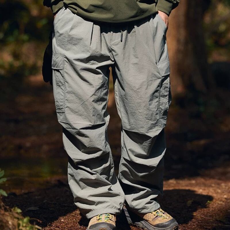 【商品管理番号】 M0311 【商品説明】 シワ感のある軽やかなナイロン生地を使用したカーゴパンツ。ゆとりのあるシルエットと大きめのポケットが特徴で、動きやすさと収納力を両立。アウトドアはもちろん、日常使いにも活躍する実用的なデザインです。 ASHGREEN/SMOKYGRAY/CHARCOALBLACK 【サイズ】 【S】 ウエスト:78cm / 着丈:99cm / 裾まわり:48cm / ヒップ:122cm 【M】 ウエスト:82cm / 着丈:101cm / 裾まわり:50cm / ヒップ:126cm 【L】 ウエスト:86cm / 着丈:103cm / 裾まわり:52cm / ヒップ:130cm 【XL】 ウエスト:90cm / 着丈:105cm / 裾まわり:54cm / ヒップ:134cm モデル身長:175㎝/体重:63㎏/着用サイズ:Mサイズ ※サイズは測り方により1-3㎝の誤差が生じる場合がございます。 【素材】 nylon100%