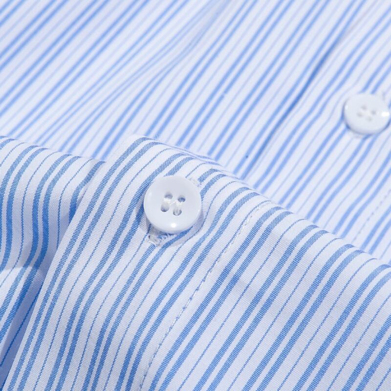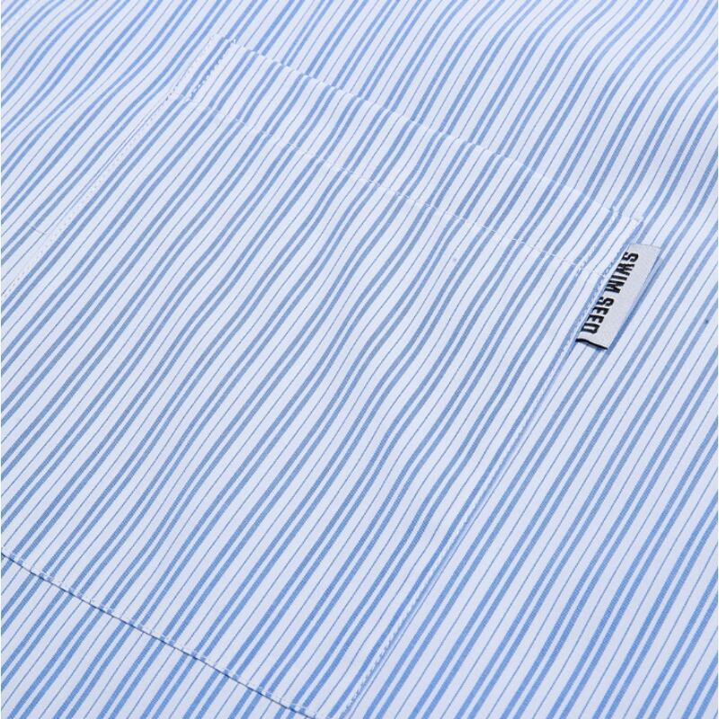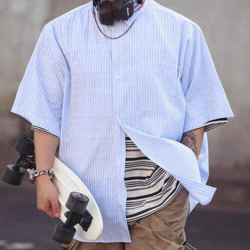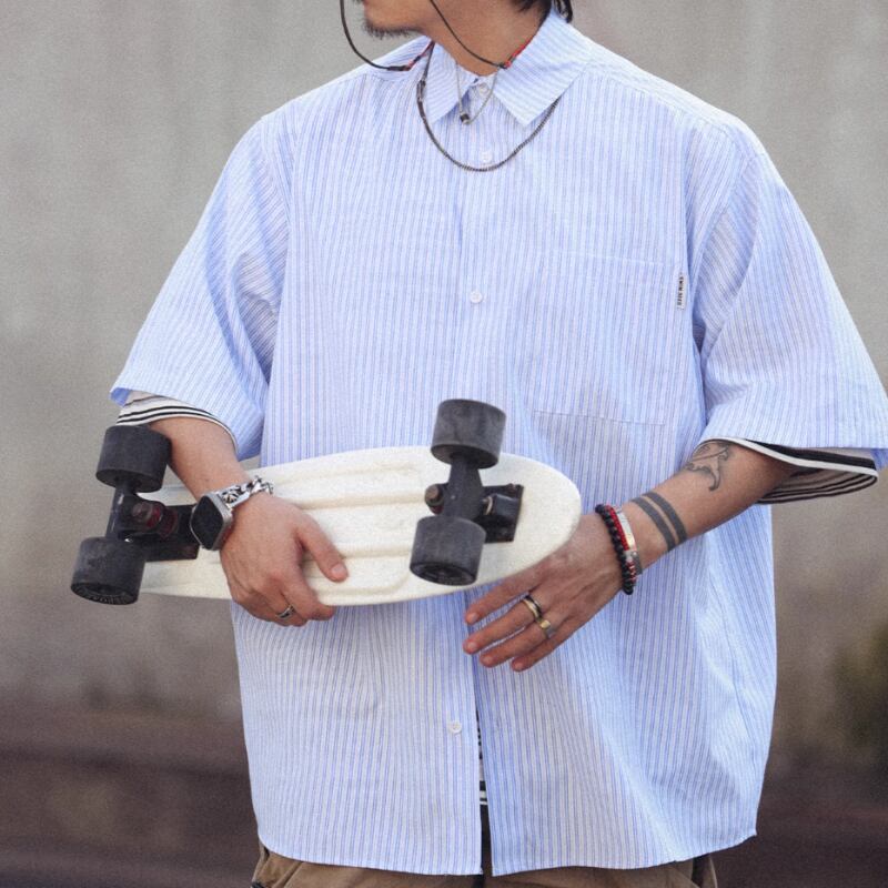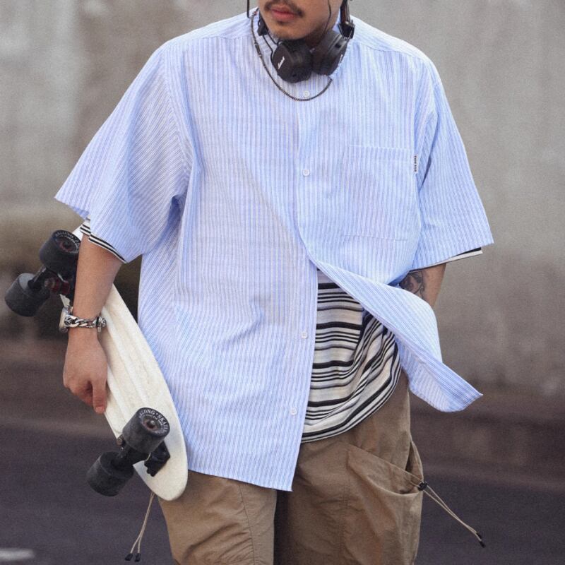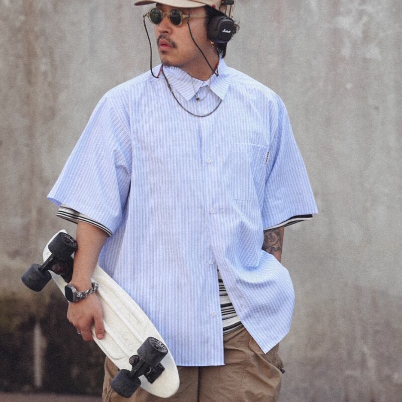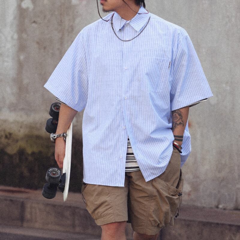 ストライプデザインが際立つカジュアルシャツ。爽やかな印象を与えるシルエットで、デニムやショートパンツとも簡単に合わせられ、様々なスタイルを楽しむことができます。