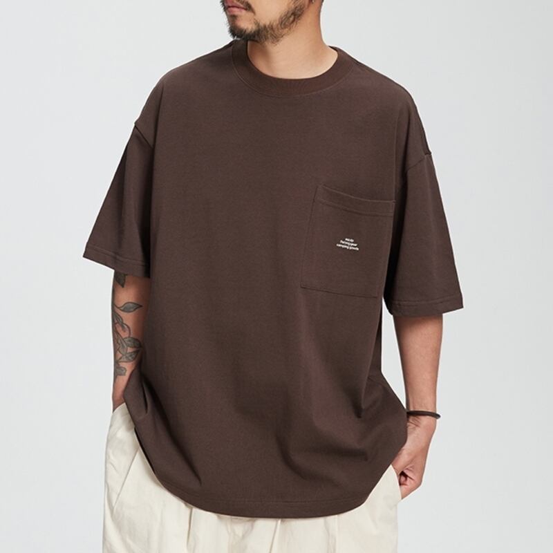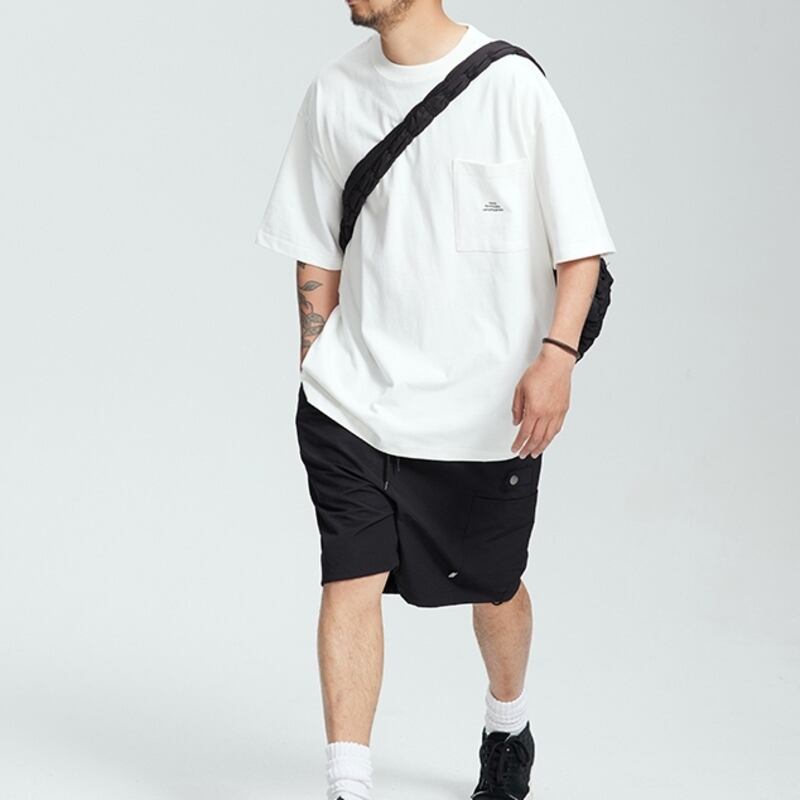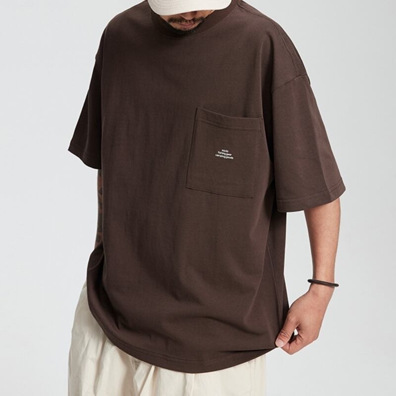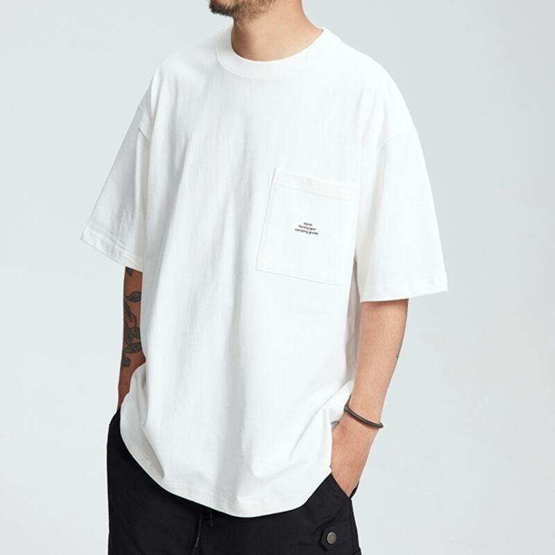 さりげないワンポイントのレタリング入りパッチポケットがこなれたオーバーサイズTシャツです。