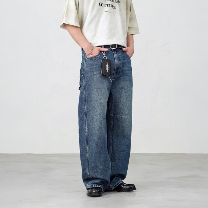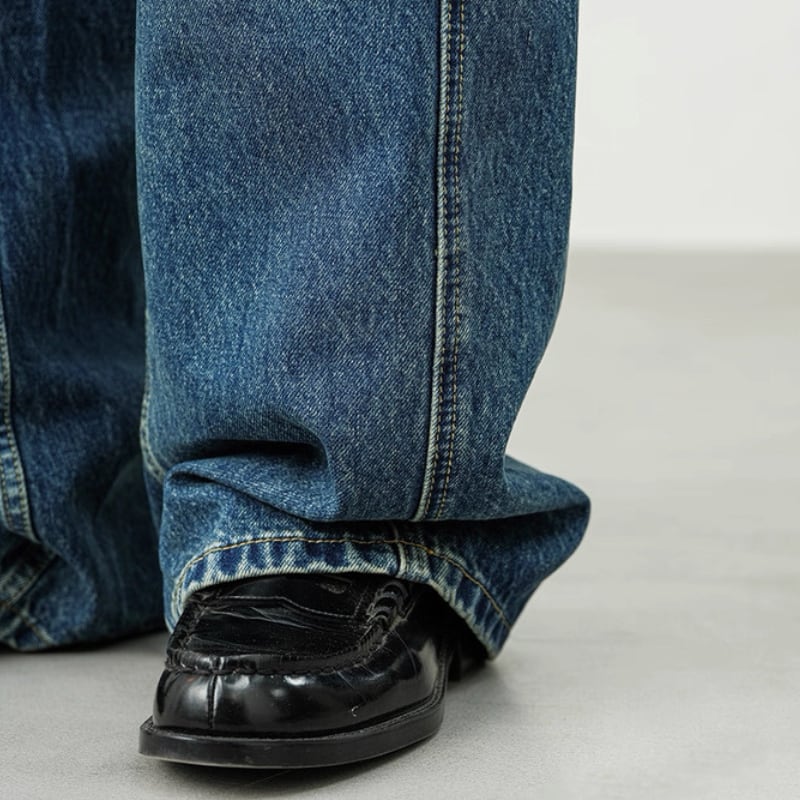 ゆったりとしたシルエットが魅力のワイドデニムパンツ。程よい色落ち加工がこなれ感を演出し、シンプルなトップスと合わせるだけで雰囲気のあるスタイルに。裾までまっすぐ落ちるワイドなラインが、足元にしっかりと存在感をプラスします。