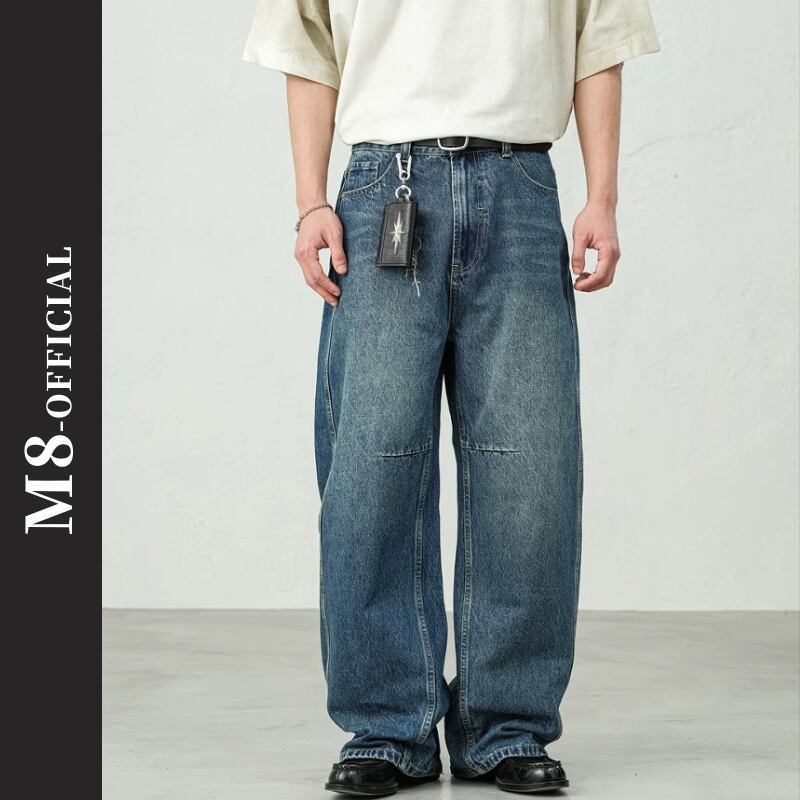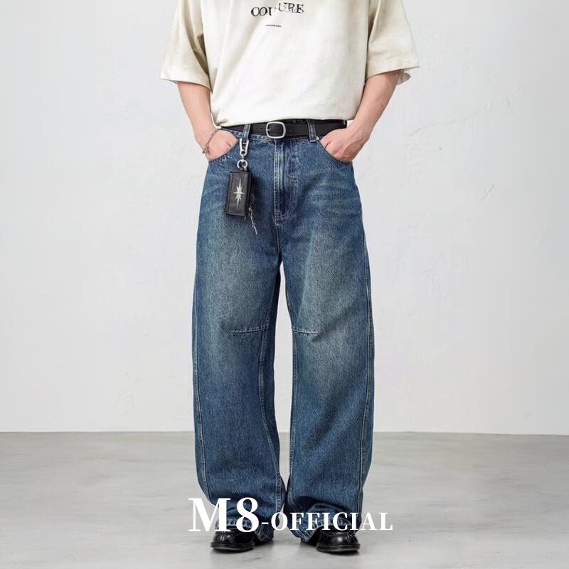 washed wide denim pants M0328
