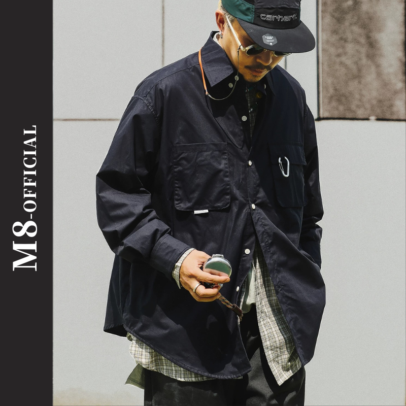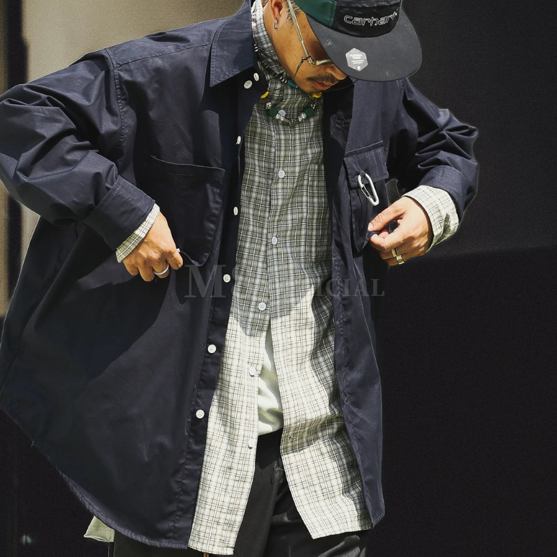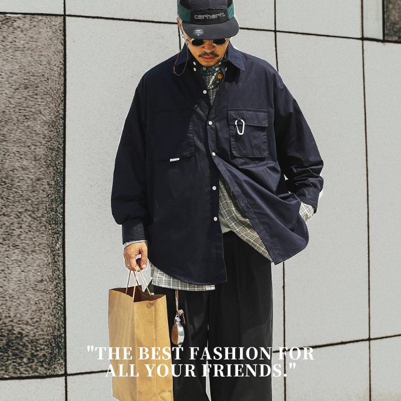 【商品管理番号】 M0319 【商品説明】 実用的なポケットデザインが特徴のユーティリティシャツ。程よくゆとりのあるシルエットで、ストリートにもカジュアルにも馴染む1枚です。 軽めの羽織りとしても使え、レイヤードコーデにもぴったり。デイリーユースに活躍する、機能性とデザイン性を兼ね備えたアイテムです。 DARKBLUE/BLUE 【サイズ】 【S】肩幅:50cm / 胸囲:134cm / 着丈:70cm / 袖丈:60cm 【M】肩幅:52cm / 胸囲:138cm / 着丈:72cm / 袖丈:61cm 【L】肩幅:54cm / 胸囲:142cm / 着丈:74cm / 袖丈:62cm 【XL】肩幅:56cm / 胸囲:146cm / 着丈:76cm / 袖丈:63cm ※サイズは測り方により1-3㎝の誤差が生じる場合がございます。 【素材】 polyester100%