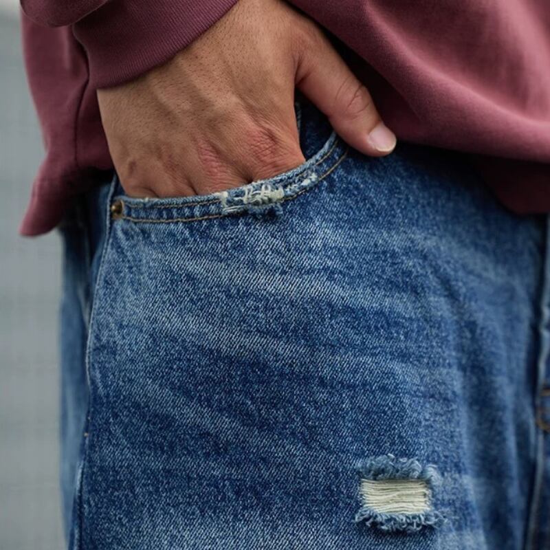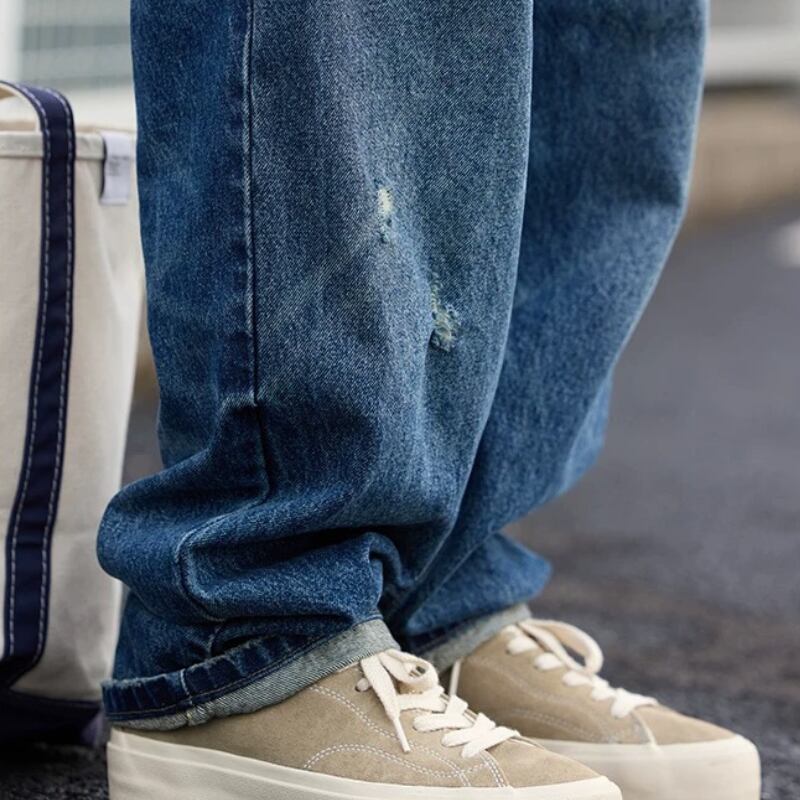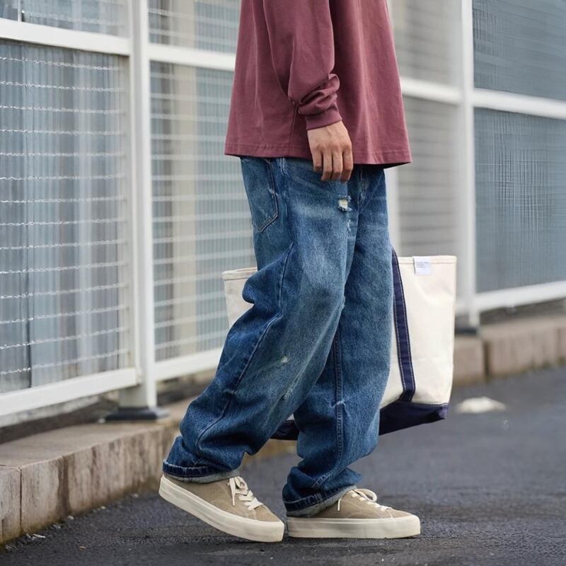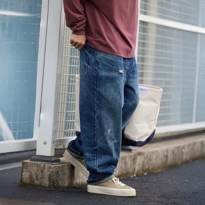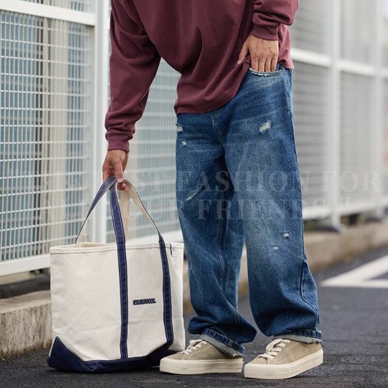 【商品管理番号】 M0330 【商品説明】 ゆったりとしたシルエットが特徴のデニムパンツ。ほどよいダメージ加工がこなれ感を演出し、ラフに穿きこなせる一本です。 シンプルなトップスと合わせるだけで、自然とカジュアルな雰囲気に仕上がります。 BLUE 【サイズ】 【S】 ウエスト:76cm / 着丈:100cm / 太もも周り:68cm / 裾まわり:40cm 【M】 ウエスト:80cm / 着丈:102cm / 太もも周り:70cm / 裾まわり:41cm 【L】 ウエスト:84cm / 着丈:104cm / 太もも周り:72cm / 裾まわり:42cm 【XL】 ウエスト:88cm / 着丈:106cm / 太もも周り:74cm / 裾まわり:43cm 【2XL】 ウエスト:92cm / 着丈:108cm / 太もも周り:76cm / 裾まわり:44cm モデル身長:173㎝/体重:65㎏/着用サイズ:Lサイズ ※サイズは測り方により1-3㎝の誤差が生じる場合がございます。 【素材】 polyester72%/cotton28%