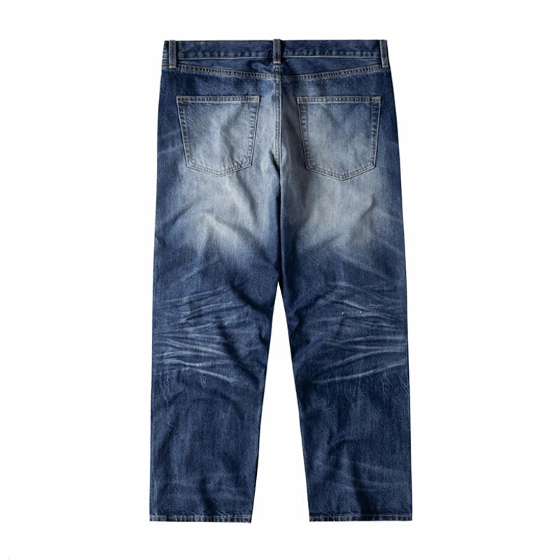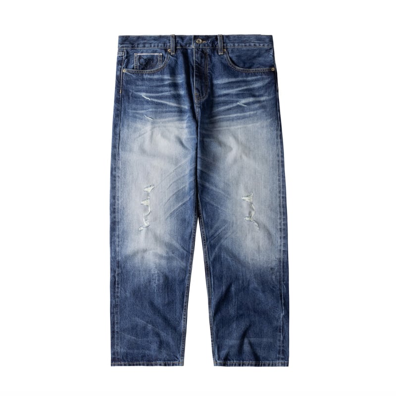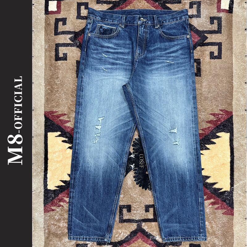 【商品管理番号】 M0360 【商品説明】 すっきりとしたストレートシルエットが魅力のダメージデニムパンツ。程よい色落ちとクラッシュ加工がこなれ感を演出し、シンプルなトップスと合わせるだけで雰囲気のあるスタイルに。裾までまっすぐ落ちるワイドなラインが、足元にしっかりと存在感をプラスします。抜け感のあるカジュアルコーデに映える一本です。 BLUE 【サイズ】 【S】 ウエスト:82cm / 着丈:101cm / ヒップ:114cm / 裾まわり:38cm 【M】 ウエスト:86cm / 着丈:103cm / ヒップ:118cm / 裾まわり:40cm 【L】 ウエスト:90cm / 着丈:105cm / ヒップ:122cm / 裾まわり:42cm 【XL】 ウエスト:94cm / 着丈:107cm / ヒップ:126cm / 裾まわり:44cm ※サイズは測り方により1-3㎝の誤差が生じる場合がございます。 【素材】 cotton100%