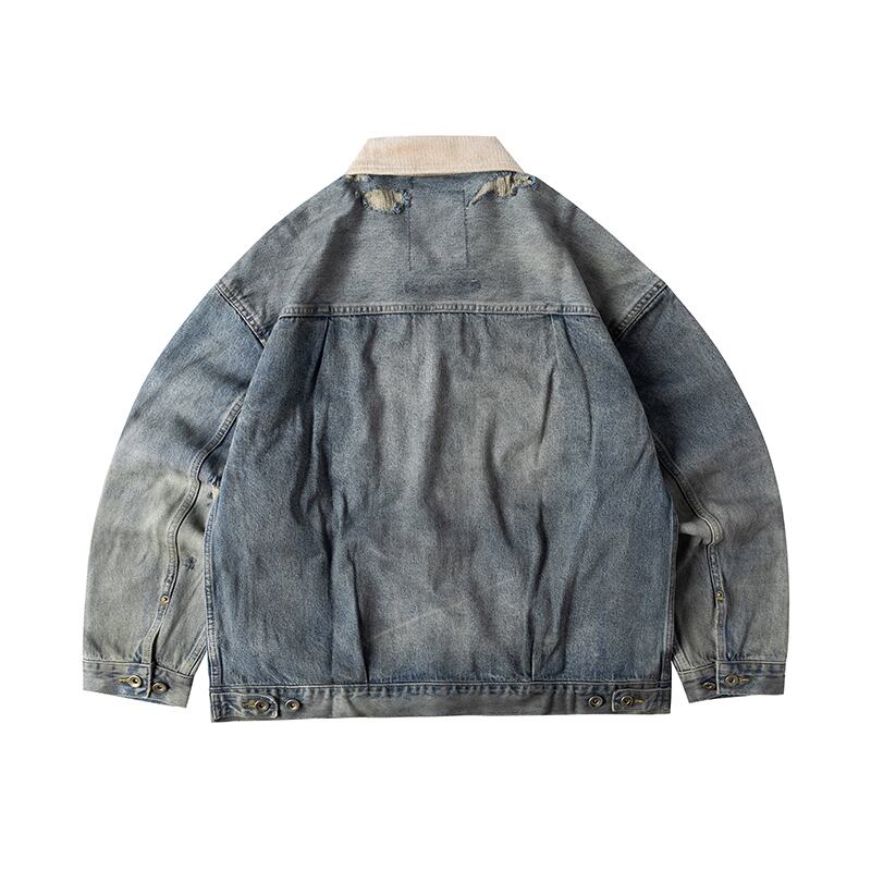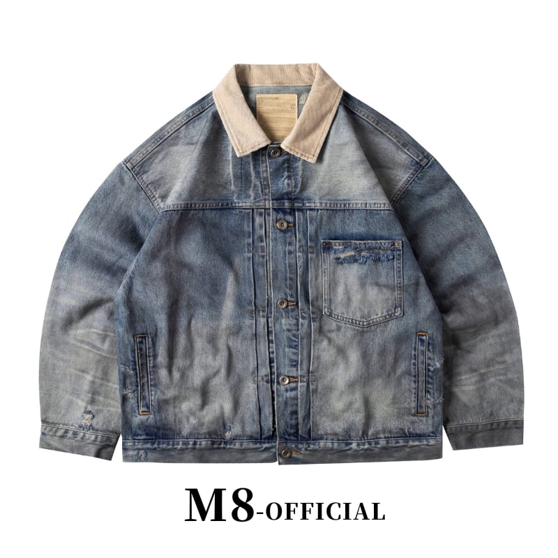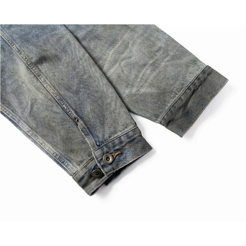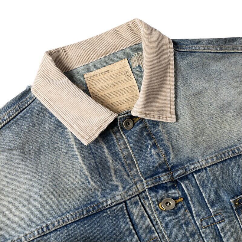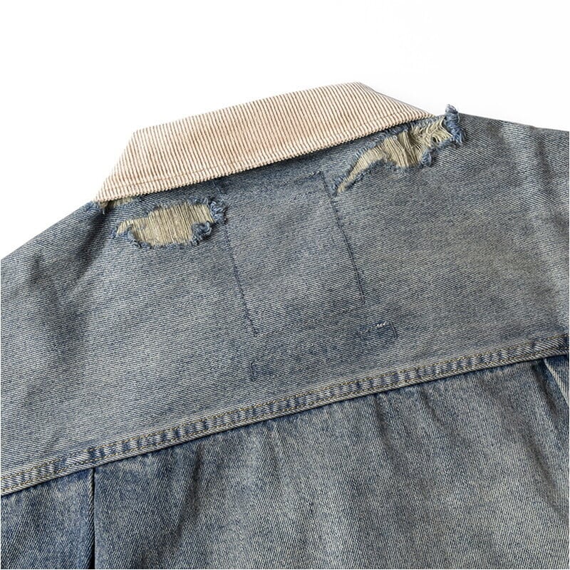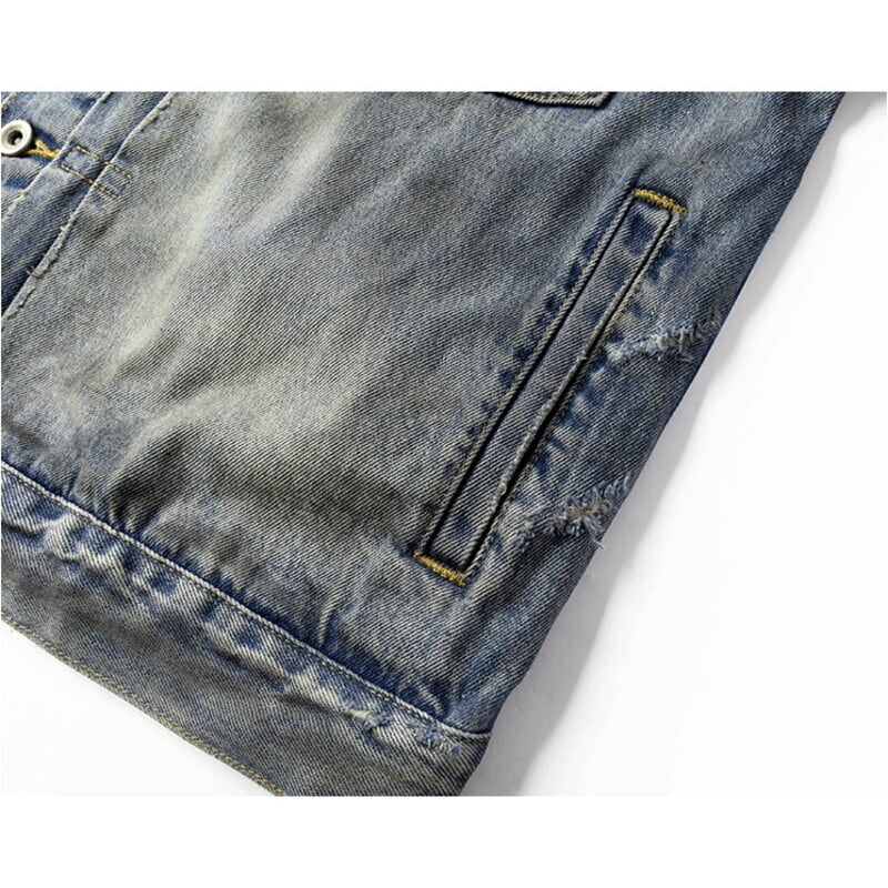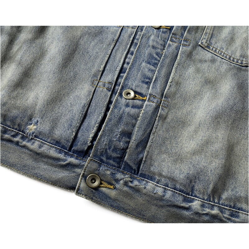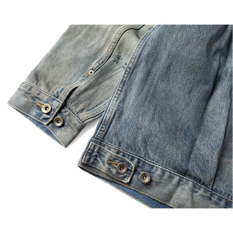 【商品管理番号】 M0363 【商品説明】 ヴィンテージ調のエイジング加工が施されたこなれた長袖デニムジャケットです。異素材のクレリックカラーがアクセントになり、個性的な印象を与える一着。カジュアルなスタイルから、ちょっとしたお出かけまで幅広くコーディネートできるアイテムです。着こなしの幅を広げる、使い勝手の良いデニムジャケットです。 BLUE 【サイズ】 【S】肩幅:60cm / 胸囲:122cm / 着丈:70cm / 袖丈:57cm 【M】肩幅:62cm / 胸囲:126cm / 着丈:72cm / 袖丈:58cm 【L】肩幅:64cm / 胸囲:130cm / 着丈:74cm / 袖丈:59cm 【XL】肩幅:66cm / 胸囲:134cm / 着丈:76cm / 袖丈:60cm ※サイズは測り方により1-3㎝の誤差が生じる場合がございます。 【素材】 cotton100%