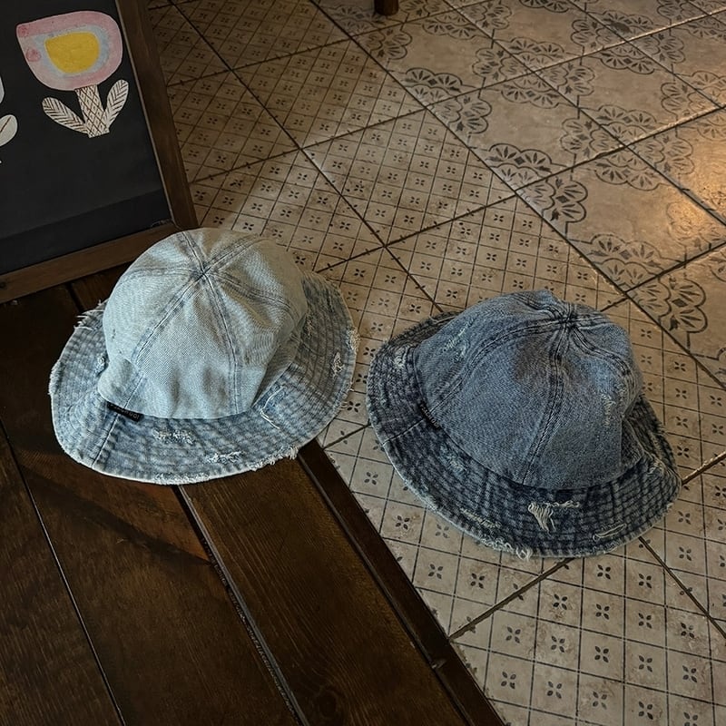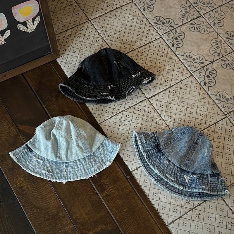 【商品管理番号】 M0370 【商品説明】 ヴィンテージ調のクラッシュ加工が目を惹く、デニム仕立てのハットです。こなれた存在感のあるデザインが、カジュアルスタイルを一層引き立てます。日常使いやアウトドアシーン、また特別な日のコーディネートにも大活躍。自分らしいスタイルを演出するための一品です! LIGHTBLUE/BLUE/BLACK 【サイズ】 【FREE】頭囲:60cm 深さ:16cm つば:7cm ※サイズは測り方により1-3㎝の誤差が生じる場合がございます。