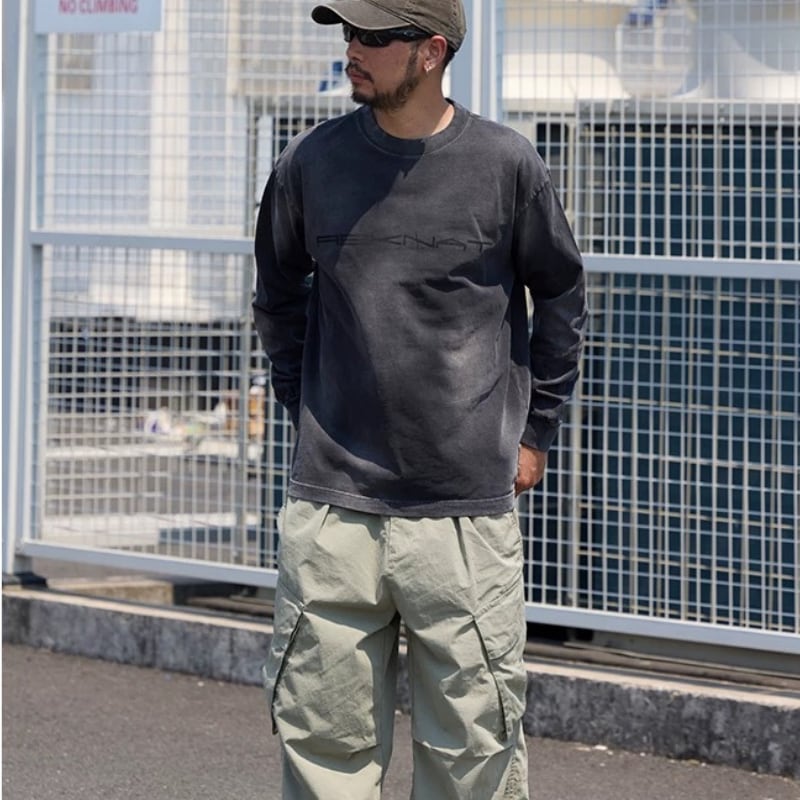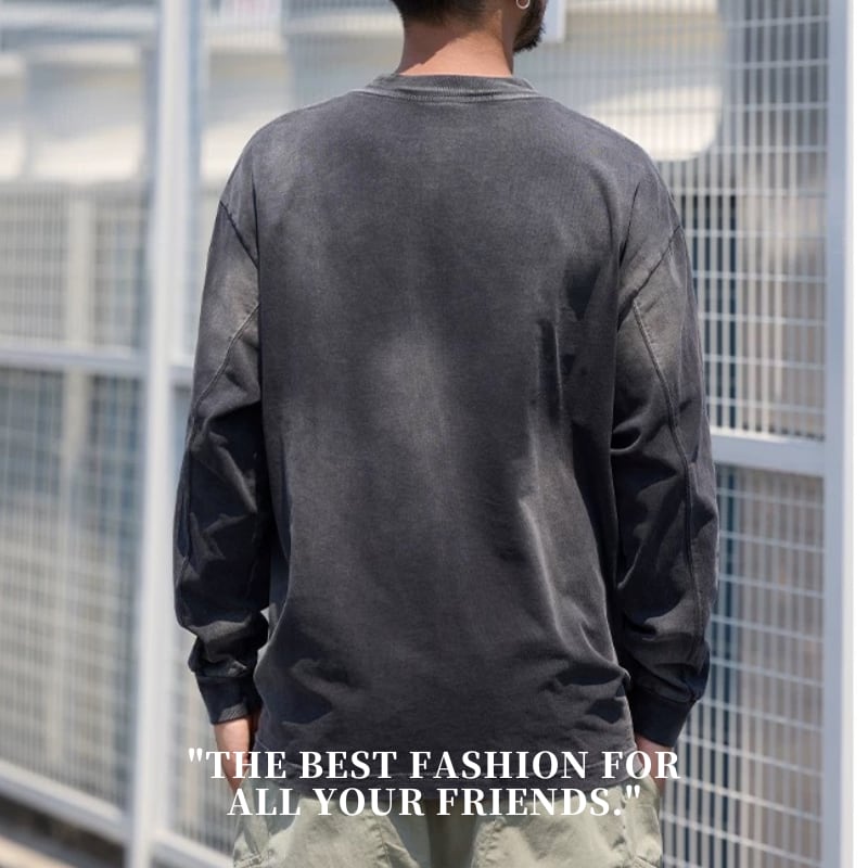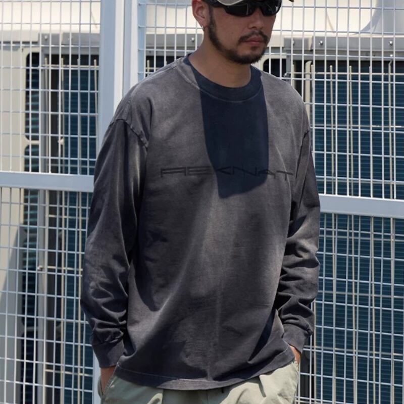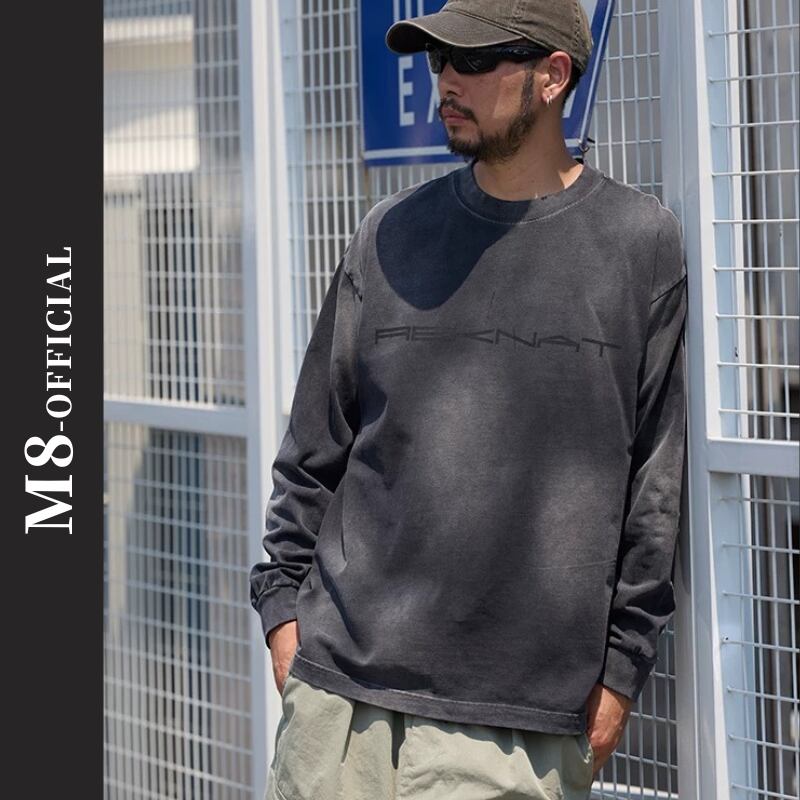 【商品管理番号】 M0374 【商品説明】 ヴィンテージ感のあるウォッシュ加工が特徴のロングスリーブTシャツ。 胸元のロゴがさりげなく存在感をプラスします。 リラックス感のあるシルエットで、幅広いスタイリングに活躍します。 BLACK/BROWN 【サイズ】 【S】肩幅:53.5cm / 胸囲:116cm / 着丈:66cm / 袖丈:54cm 【M】肩幅:55.5cm / 胸囲:120cm / 着丈:68cm / 袖丈:55cm 【L】肩幅:57.5cm / 胸囲:124cm / 着丈:70cm / 袖丈:56cm 【XL】肩幅:59.5cm / 胸囲:128cm / 着丈:72cm / 袖丈:57cm 【2XL】肩幅:61.5cm / 胸囲:132cm / 着丈:74cm / 袖丈:58cm モデル身長:175㎝/体重:63㎏/着用サイズ:Mサイズ ※サイズは測り方により1-3㎝の誤差が生じる場合がございます。 【素材】 cotton100%