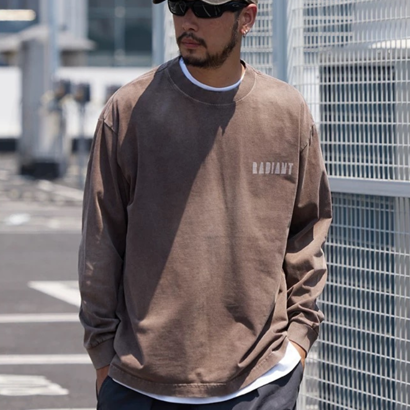 【商品管理番号】 M0375 【商品説明】 胸元にロゴをあしらった長袖Tシャツです。 背面にはメッセージプリントが入り、存在感をプラス。 ウォッシュ加工でヴィンテージライクな雰囲気に仕上げています。 BROWN/BLACK 【サイズ】 【S】肩幅:53.5cm / 胸囲:116cm / 着丈:66cm / 袖丈:54cm 【M】肩幅:55.5cm / 胸囲:120cm / 着丈:68cm / 袖丈:55cm 【L】肩幅:57.5cm / 胸囲:124cm / 着丈:70cm / 袖丈:56cm 【XL】肩幅:59.5cm / 胸囲:128cm / 着丈:72cm / 袖丈:57cm 【2XL】肩幅:61.5cm / 胸囲:132cm / 着丈:74cm / 袖丈:58cm モデル身長:175㎝/体重:63㎏/着用サイズ:Mサイズ ※サイズは測り方により1-3㎝の誤差が生じる場合がございます。 【素材】 cotton100%