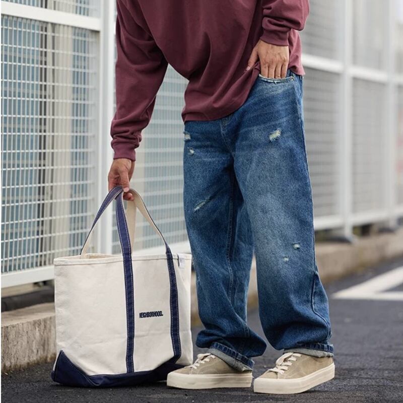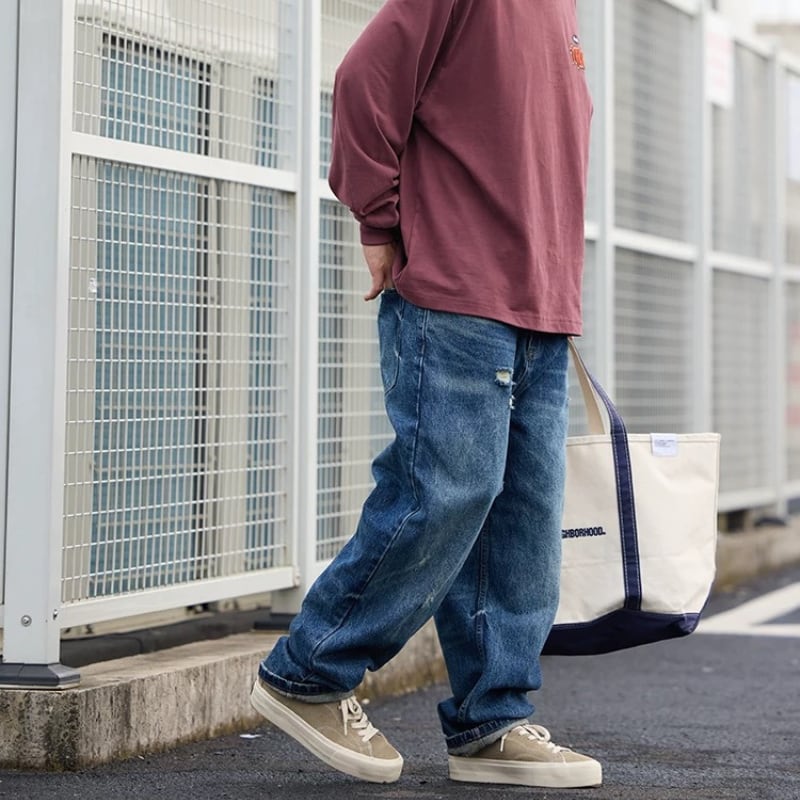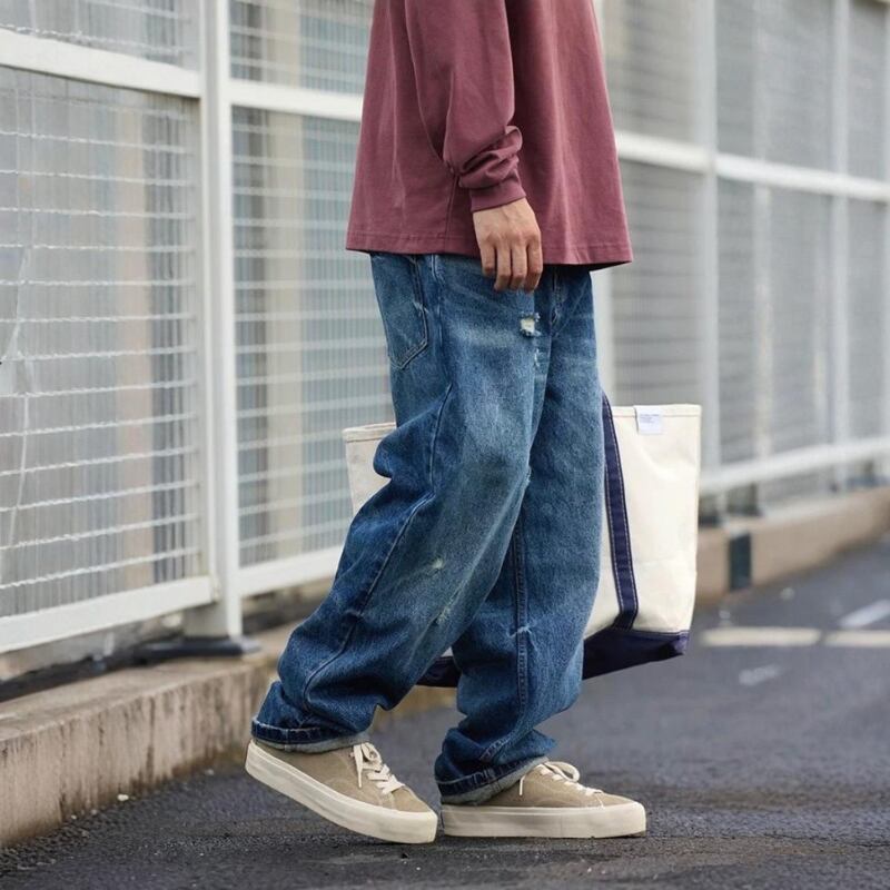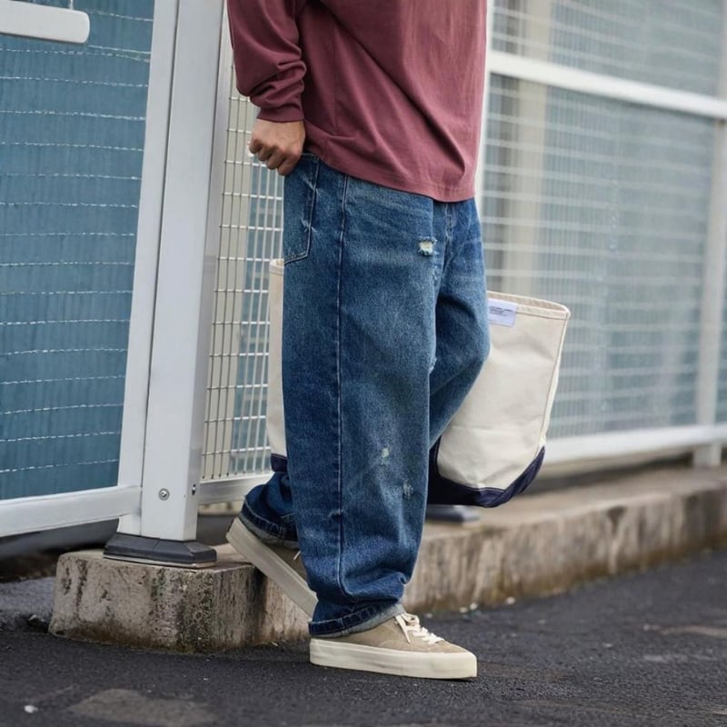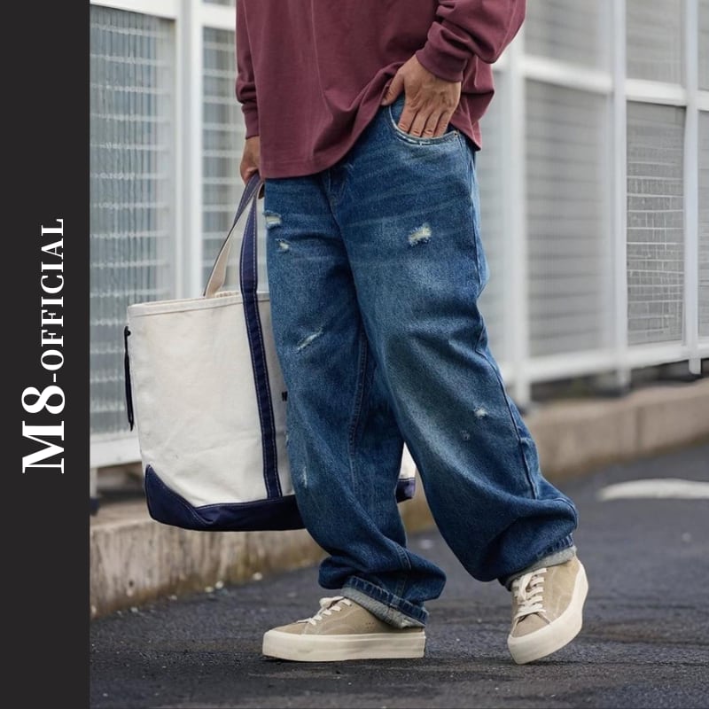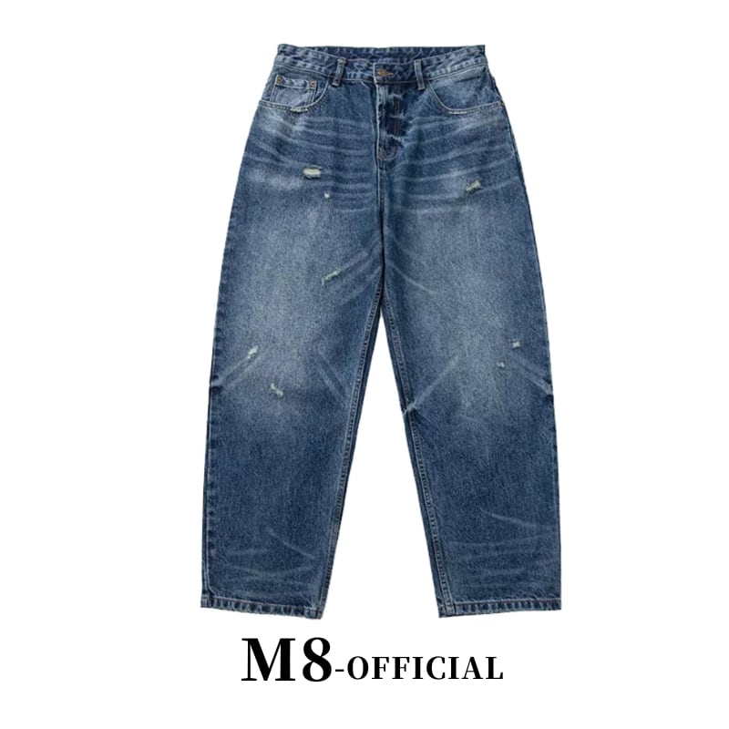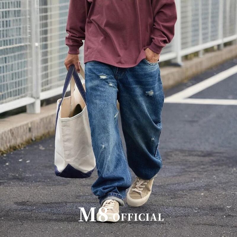 【商品管理番号】 M0376 【商品説明】 ゆったりとしたシルエットのワイドデニムです。 程よいダメージ加工がこなれ感を演出。 カジュアルスタイルに合わせやすい一本です。 BLUE 【サイズ】 【S】 ウエスト:76cm / 着丈:100cm / ヒップ:108cm / 太もも周り:68cm / 裾まわり:40cm 【M】 ウエスト:80cm / 着丈:102cm / ヒップ:112cm / 太もも周り:70cm / 裾まわり:41cm 【L】 ウエスト:84cm / 着丈:104cm / ヒップ:116cm / 太もも周り:72cm / 裾まわり:42cm 【XL】 ウエスト:88cm / 着丈:106cm / ヒップ:120cm / 太もも周り:74cm / 裾まわり:43cm 【2XL】 ウエスト:92cm / 着丈:108cm / ヒップ:124cm / 太もも周り:76cm / 裾まわり:44cm モデル身長:175㎝/体重:65㎏/着用サイズ:Mサイズ ※サイズは測り方により1-3㎝の誤差が生じる場合がございます。 【素材】 cotton100%