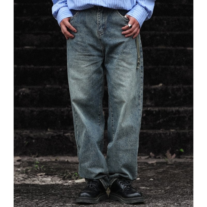 【商品管理番号】 M0352 【商品説明】 ゆったりとしたストレートシルエットのが綺麗なデニムパンツです。 程よい色落ち感がこなれた雰囲気を演出し、ステッチ入りのパッチポケットがアクセントになっています。 シンプルなトップスやスニーカーと合わせやすい一本です。 BLUE 【サイズ】 【M】 ウエスト:75cm / 着丈:104cm / ヒップ:105cm / 裾まわり:39cm 【L】 ウエスト:78cm / 着丈:105cm / ヒップ:108cm / 裾まわり:40cm 【XL】 ウエスト:81cm / 着丈:106cm / ヒップ:111cm / 裾まわり:41cm 【2XL】 ウエスト:84cm / 着丈:107cm / ヒップ:114cm / 裾まわり:42cm モデル身長:176㎝/体重:62.5㎏/着用サイズ:M-Lサイズ ※サイズは測り方により1-3㎝の誤差が生じる場合がございます。 【素材】 cotton100%/polyester20%