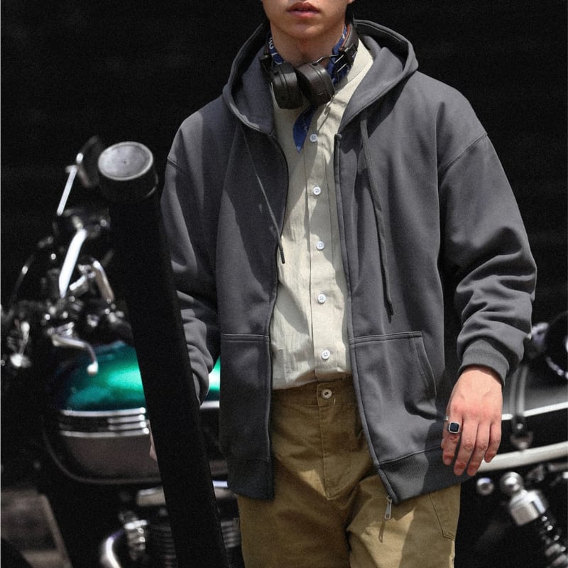 【商品管理番号】 M0386 【商品説明】 シンプルなデザインのジップアップフーディ。 ゆったりとしたシルエットでリラックス感があり、デイリー使いに最適。 フロントポケット付きで実用性も兼ね備え、カジュアルスタイルに欠かせないアイテムです。 BLACK/LIGHTGRAY/CHARCOALGRAY/LIGHTBEIGE/HEATHERGRAY/NAVY 【サイズ】 【S】肩幅:50cm / 胸囲:48cm / 着丈:65cm / 袖丈:52cm 【M】肩幅:53cm / 胸囲:51cm / 着丈:67cm / 袖丈:53cm 【L】肩幅:56cm / 胸囲:54cm / 着丈:69cm / 袖丈:54cm 【XL】肩幅:59cm / 胸囲:57cm / 着丈:71cm / 袖丈:55cm 【2XL】肩幅:62cm / 胸囲:60cm / 着丈:73cm / 袖丈:56cm 【3XL】肩幅:65cm / 胸囲:63cm / 着丈:75cm / 袖丈:57cm 【4XL】肩幅:68cm / 胸囲:66cm / 着丈:77cm / 袖丈:58cm 【5XL】肩幅:71cm / 胸囲:69cm / 着丈:79cm / 袖丈:59cm モデル身長:176㎝/体重:62.5㎏/着用サイズ:M/Lサイズ ※サイズは測り方により1-3㎝の誤差が生じる場合がございます。 【素材】 cotton56%/polyester44%