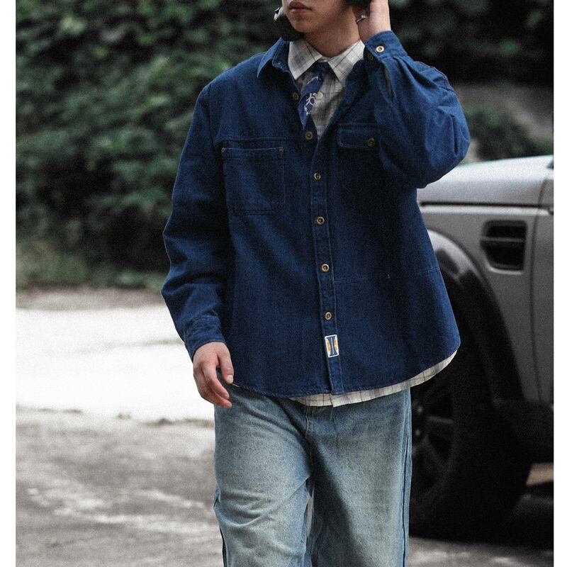 【商品管理番号】 M0397 【商品説明】 レトロなパッチデザインが魅力のデニムシャツ。こなれた雰囲気でカジュアルなスタイルにぴったりフィットします。シンプルながら個性的なデザインは、Tシャツはもちろん、ジャケットやニットとの相性も抜群。日常使いから特別なシーンまで幅広く活躍し、このシャツがあれば、自分だけのスタイルを楽しむことができます! BLUE 【サイズ】 【M】肩幅:56.8cm / 胸囲:120cm / 着丈:72cm / 袖丈:55cm 【L】肩幅:58cm / 胸囲:124cm / 着丈:74cm / 袖丈:57cm 【XL】肩幅:59.2cm / 胸囲:128cm / 着丈:76cm / 袖丈:58.5cm 【2XL】肩幅:60.4cm / 胸囲:132cm / 着丈:78cm / 袖丈:60cm モデル身長:176㎝/体重:62.5㎏/着用サイズ:L-XLサイズ ※サイズは測り方により1-3㎝の誤差が生じる場合がございます。 【素材】 cotton90%/polyester10%