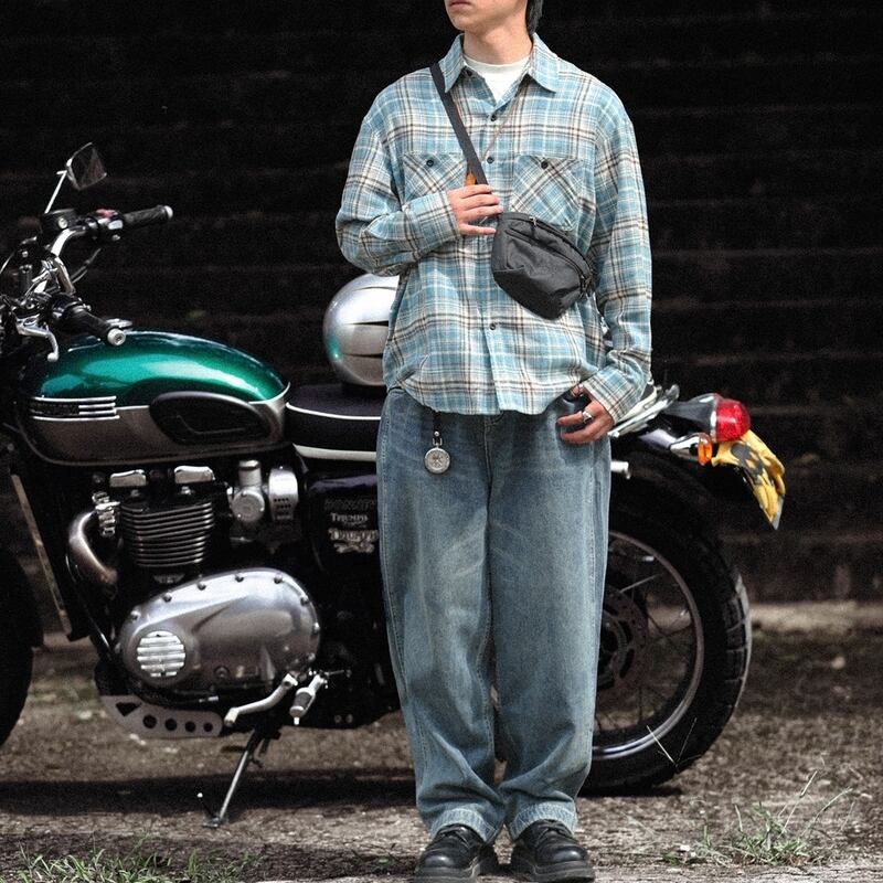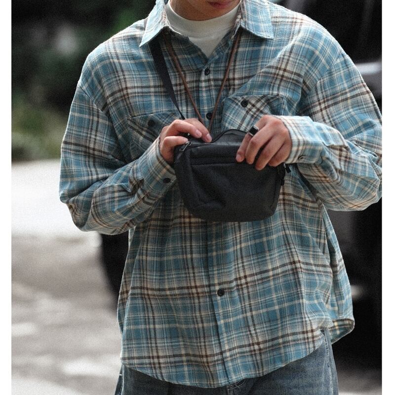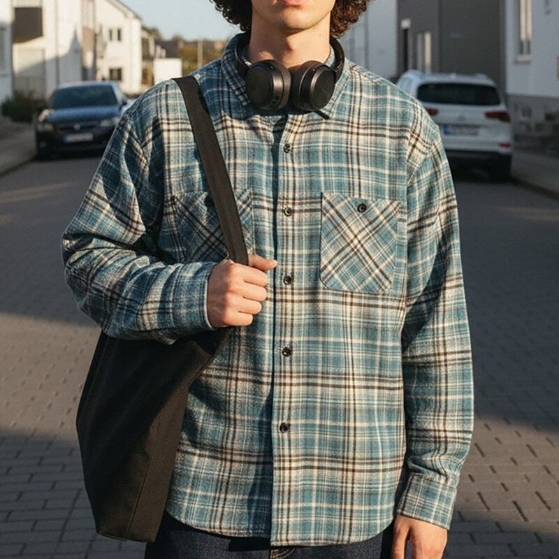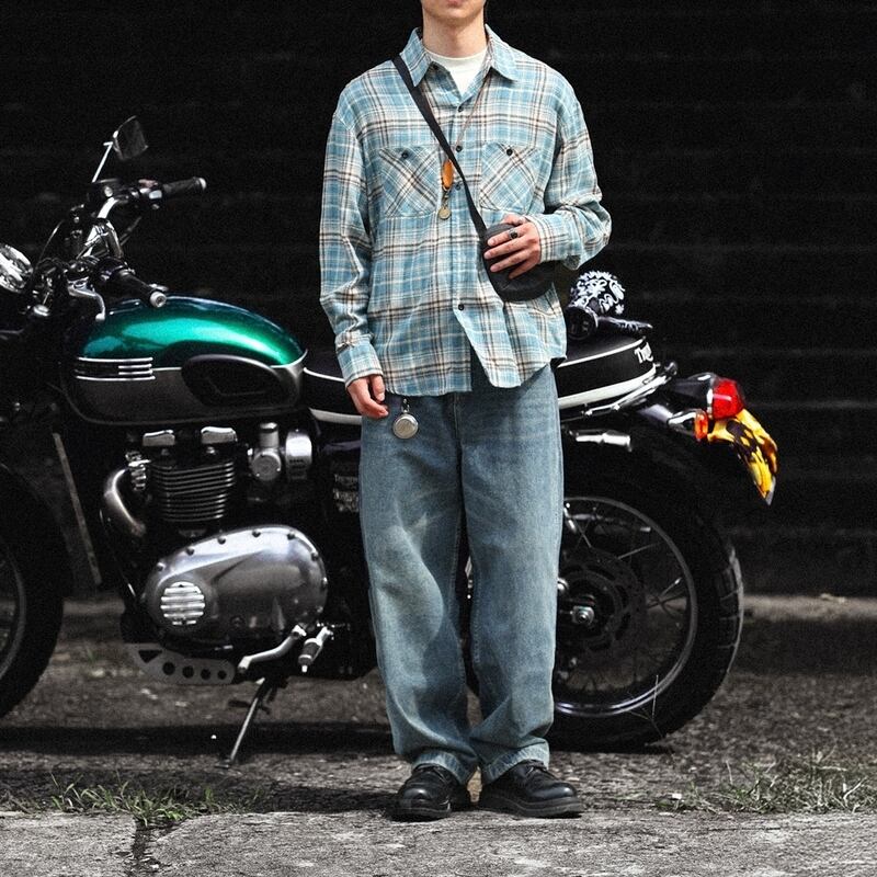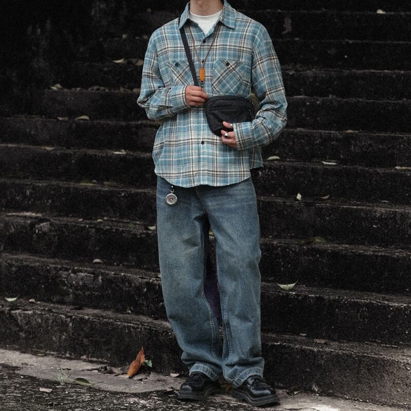 【商品管理番号】 M0405 【商品説明】 ダブルポケット付きのレトロなチェック柄のシャツ。リラックス感のあるシルエットに仕上げ、デイリーに取り入れやすい一枚です。胸ポケットがさりげないアクセントになり、羽織りとしてもレイヤードとしても使いやすい万能アイテム。カジュアルからストリートまで幅広いスタイルにフィットします。 BLUE 【サイズ】 【M】肩幅:54cm / 胸囲:124cm / 着丈:74cm / 袖丈:60cm 【L】肩幅:55cm / 胸囲:128cm / 着丈:76cm / 袖丈:61cm 【XL】肩幅:56cm / 胸囲:132cm / 着丈:78cm / 袖丈:62cm 【2XL】肩幅:57cm / 胸囲:136cm / 着丈:80cm / 袖丈:63cm モデル身長:176㎝/体重:62.5㎏/着用サイズ:L-XLサイズ ※サイズは測り方により1-3㎝の誤差が生じる場合がございます。 【素材】 cotton100%