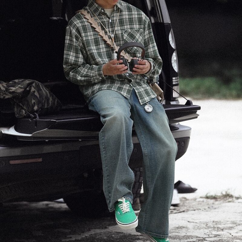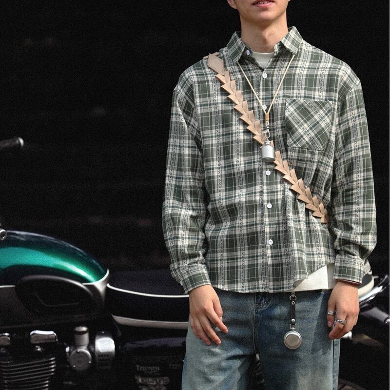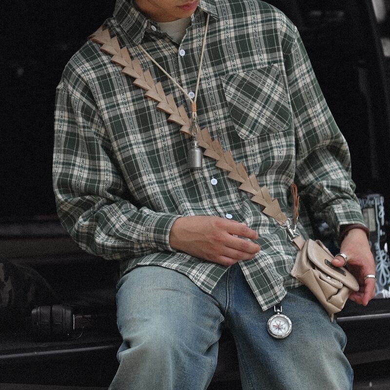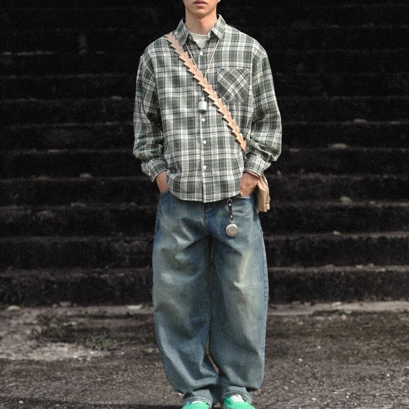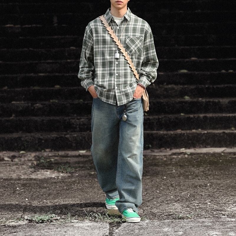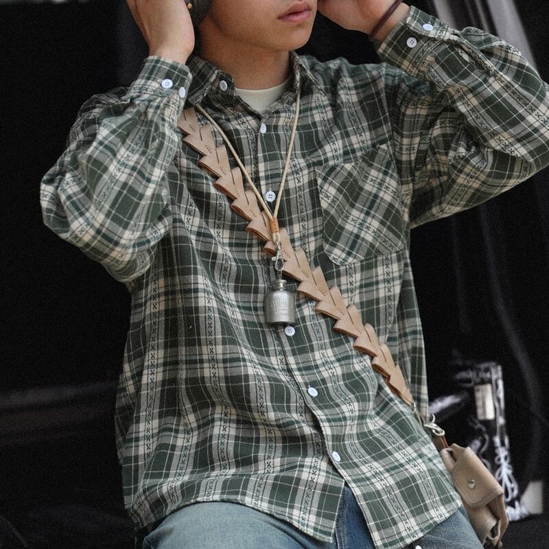 【商品管理番号】 M0408 【商品説明】 ステッチ入のチェックパターンがレトロなポケット付きシャツ。リラックス感のあるシルエットに仕上げ、デイリーに取り入れやすい一枚です。胸ポケットがさりげないアクセントになり、羽織りとしてもレイヤードとしても使いやすい万能アイテム。カジュアルからストリートまで幅広いスタイルにフィットします。 GREEN 【サイズ】 【M】肩幅:51cm / 胸囲:118cm / 着丈:72cm / 袖丈:54cm 【L】肩幅:52cm / 胸囲:122cm / 着丈:74cm / 袖丈:55cm 【XL】肩幅:53cm / 胸囲:126cm / 着丈:76cm / 袖丈:56cm 【2XL】肩幅:54cm / 胸囲:130cm / 着丈:78cm / 袖丈:57cm モデル身長:176㎝/体重:62.5㎏/着用サイズ:L-XLサイズ ※サイズは測り方により1-3㎝の誤差が生じる場合がございます。 【素材】 cotton100%