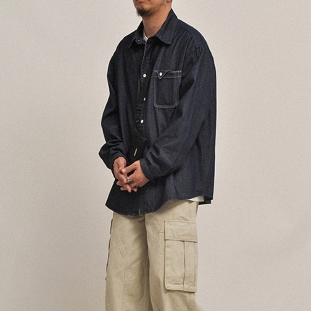 【商品管理番号】 M0429 【商品説明】 ステッチが映えるパッチデザインが魅力のデニムシャツ。こなれた雰囲気でカジュアルなスタイルにぴったりフィットします。シンプルながら個性的なデザインは、Tシャツはもちろん、ジャケットやニットとの相性も抜群。日常使いから特別なシーンまで幅広く活躍し、このシャツがあれば、自分だけのスタイルを楽しむことができます! DARKBLUE 【サイズ】 【M】肩幅:54cm / 胸囲:128cm / 着丈:70cm / 袖丈:58cm 【L】肩幅:55cm / 胸囲:132cm / 着丈:72cm / 袖丈:59cm 【XL】肩幅:56cm / 胸囲:136cm / 着丈:74cm / 袖丈:60cm 【2XL】肩幅:57cm / 胸囲:140cm / 着丈:76cm / 袖丈:61cm モデル身長:171㎝/体重:60㎏/着用サイズ:Mサイズ ※サイズは測り方により1-3㎝の誤差が生じる場合がございます。 【素材】 cotton87%/polyester13%