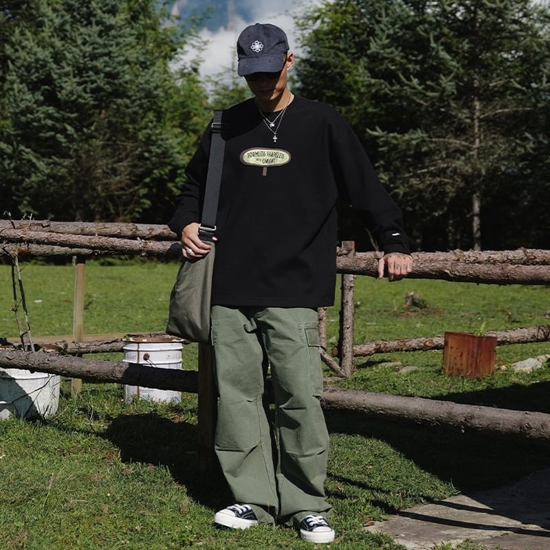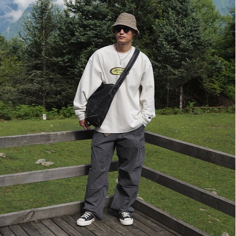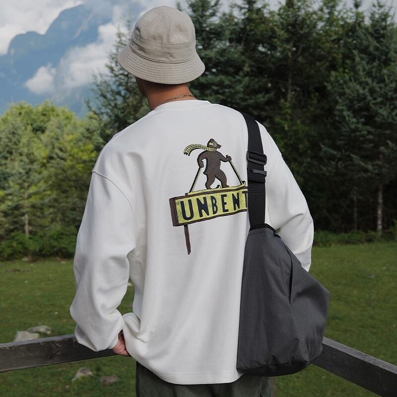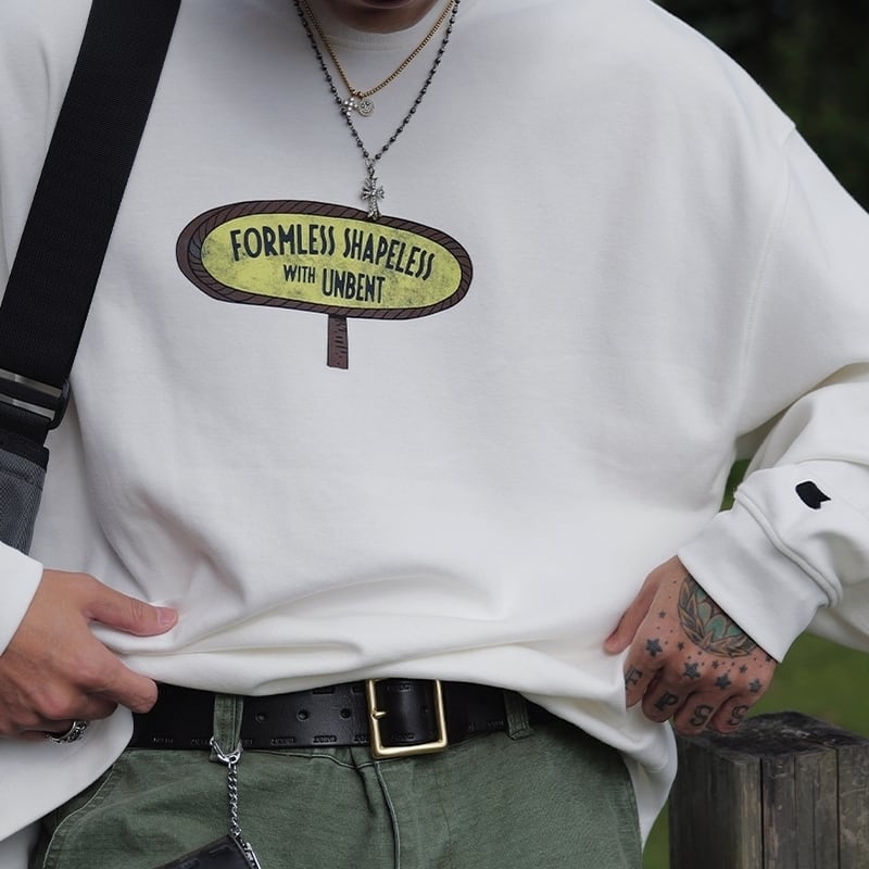 【商品管理番号】 M0433 【商品説明】 レトロな前後のプリントが遊び心あふれるロングスリーブTシャツ。 胸元のロゴがさりげなく存在感をプラスします。 リラックス感のあるシルエットで、幅広いスタイリングに活躍します。 WHITE/OATS/BLACK 【サイズ】 【S】肩幅:60cm / 胸囲:126cm / 着丈:70cm / 袖丈:60cm 【M】肩幅:62cm / 胸囲:130cm / 着丈:72cm / 袖丈:61cm 【L】肩幅:64cm / 胸囲:134cm / 着丈:74cm / 袖丈:62cm 【XL】肩幅:66cm / 胸囲:138cm / 着丈:76cm / 袖丈:63cm 【2XL】肩幅:68cm / 胸囲:142cm / 着丈:78cm / 袖丈:64cm モデル身長:176㎝/体重:68㎏/着用サイズ:Mサイズ ※サイズは測り方により1-3㎝の誤差が生じる場合がございます。 【素材】 cotton80%/polyester20%