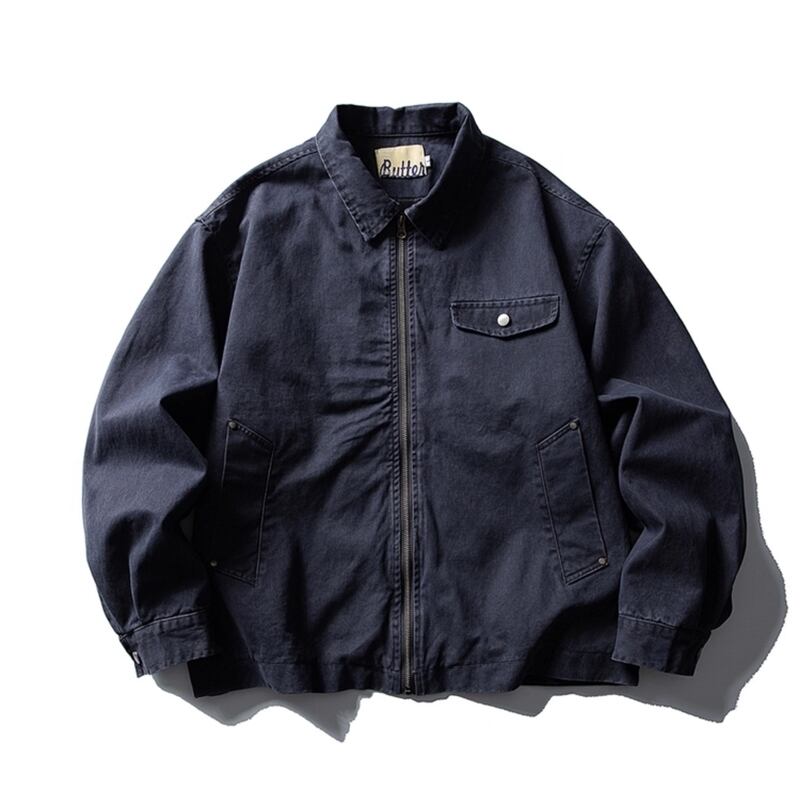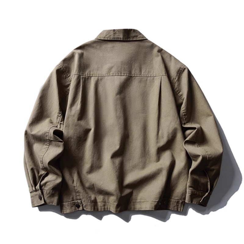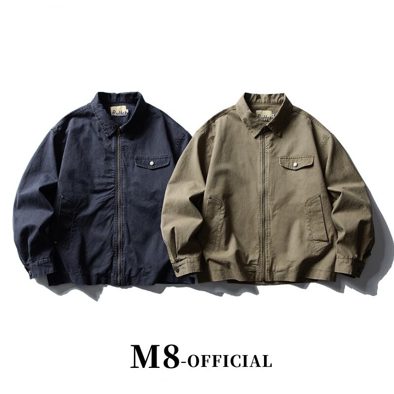 【商品管理番号】 M0436 【商品説明】 ヴィンテージ調の仕立てがシックな、マルチポケット付きジップアップジャケットです。 リラックス感のあるシルエットが特徴で、カジュアルなのにどこかオシャレな一着です。デイリーコーデはもちろん、友達とのお出かけシーンにもぴったりで、着回し力が非常に高いアイテムです。 NAVY/KHAKI 【サイズ】 【M】肩幅:55.5cm / 胸囲:126cm / 着丈:66cm / 袖丈:56cm 【L】肩幅:57cm / 胸囲:130cm / 着丈:68cm / 袖丈:57cm 【XL】肩幅:58.5cm / 胸囲:134cm / 着丈:70cm / 袖丈:58cm 【2XL】肩幅:60cm / 胸囲:138cm / 着丈:72cm / 袖丈:59cm ※サイズは測り方により1-3㎝の誤差が生じる場合がございます。 【素材】 cotton100%