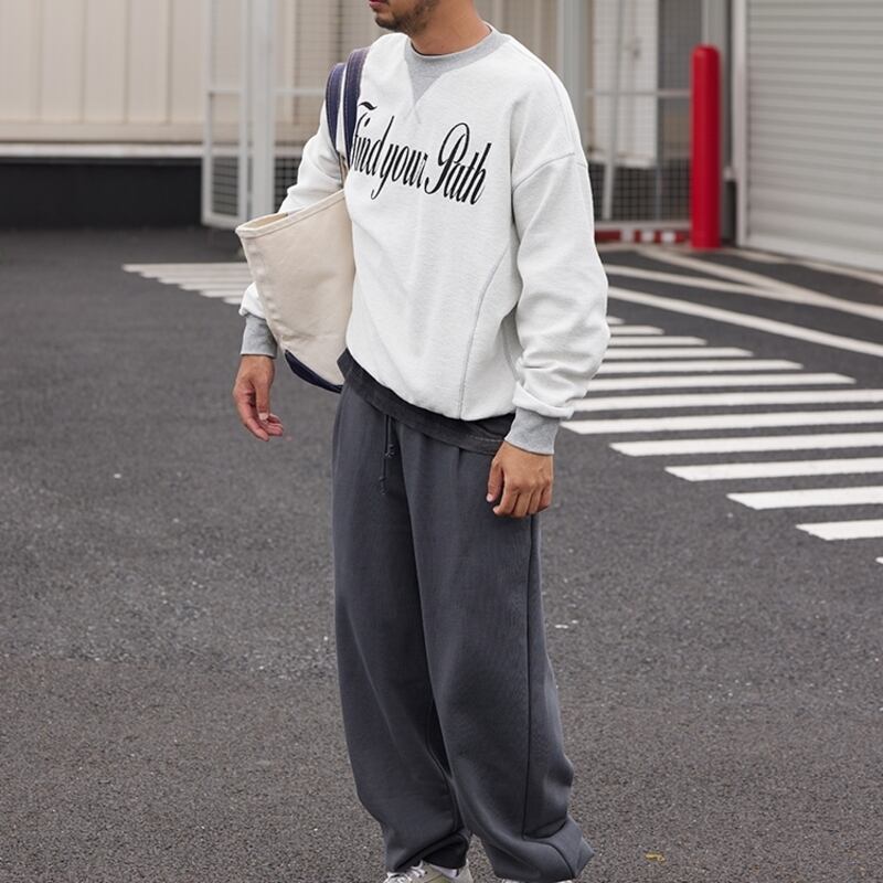 【商品管理番号】 M0413 【商品説明】 フロントにキャッチーなレタリングプリントを施したクルーネックスウェットです。 カラーブロッキングがシックなデザインで、ゆったりとしたシルエットがリラックス感のある着心地。 カジュアルコーデのアクセントにぴったりな一枚です。 GRAY 【サイズ】 【S】肩幅:55cm / 胸囲:124cm / 着丈:64cm / 袖丈:55cm 【M】肩幅:56cm / 胸囲:128cm / 着丈:65cm / 袖丈:56cm 【L】肩幅:57cm / 胸囲:132cm / 着丈:67cm / 袖丈:57cm 【XL】肩幅:58cm / 胸囲:136cm / 着丈:69cm / 袖丈:58cm 【2XL】肩幅:59cm / 胸囲:140cm / 着丈:71cm / 袖丈:59cm ※サイズは測り方により1-3㎝の誤差が生じる場合がございます。 【素材】 cotton100%