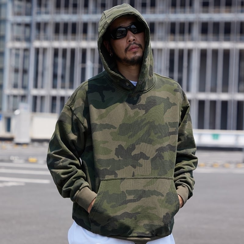 【商品管理番号】 M0422 【商品説明】 カモフラージュの総柄が特徴的なフーディーは、ミリタリー感満載のデザインで、カンガルーポケットが便利さをプラスします。バック部分にはさり気ないパッチが施されており、コーデのアクセントに最適です。カジュアルなスタイルにぴったりなアイテムです! BEIGE/GREEN 【サイズ】 【S】肩幅:55cm / 胸囲:116cm / 着丈:64cm / 袖丈:56.5cm 【M】肩幅:57cm / 胸囲:120cm / 着丈:65cm / 袖丈:57.5cm 【L】肩幅:59cm / 胸囲:124cm / 着丈:67cm / 袖丈:58.5cm 【XL】肩幅:61cm / 胸囲:128cm / 着丈:69cm / 袖丈:59.5cm 【2XL】肩幅:63cm / 胸囲:132cm / 着丈:71cm / 袖丈:60.5cm モデル身長:175㎝/体重:63㎏/着用サイズ:Mサイズ ※サイズは測り方により1-3㎝の誤差が生じる場合がございます。 【素材】 cotton100%