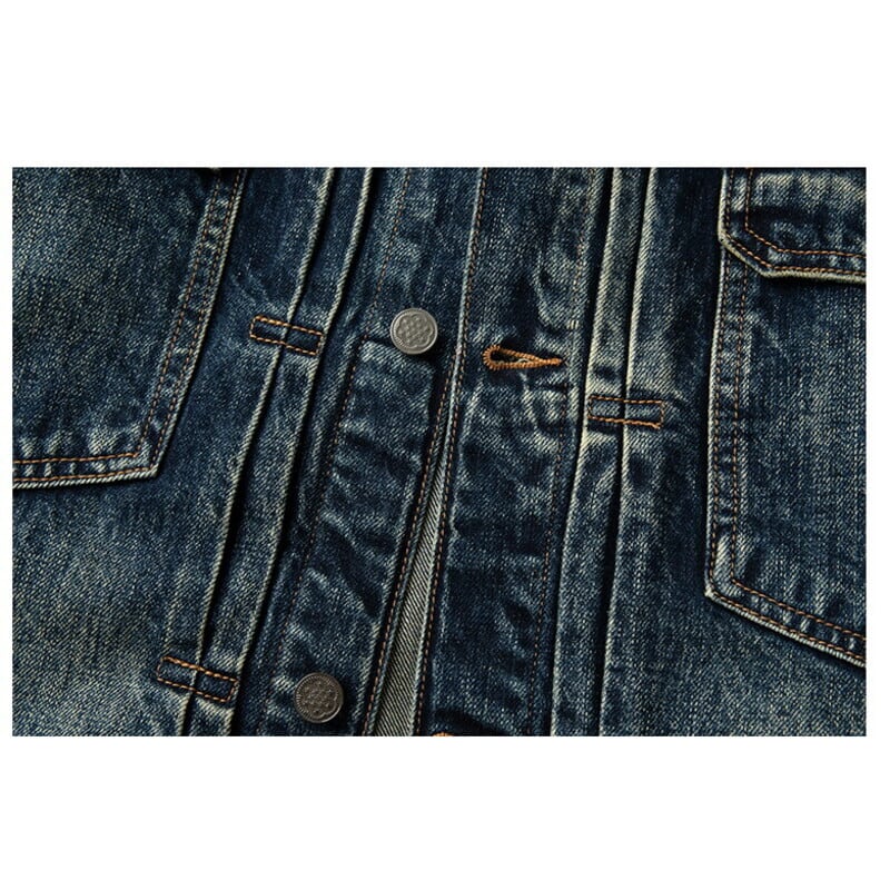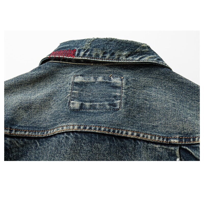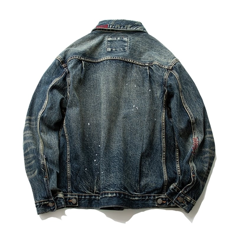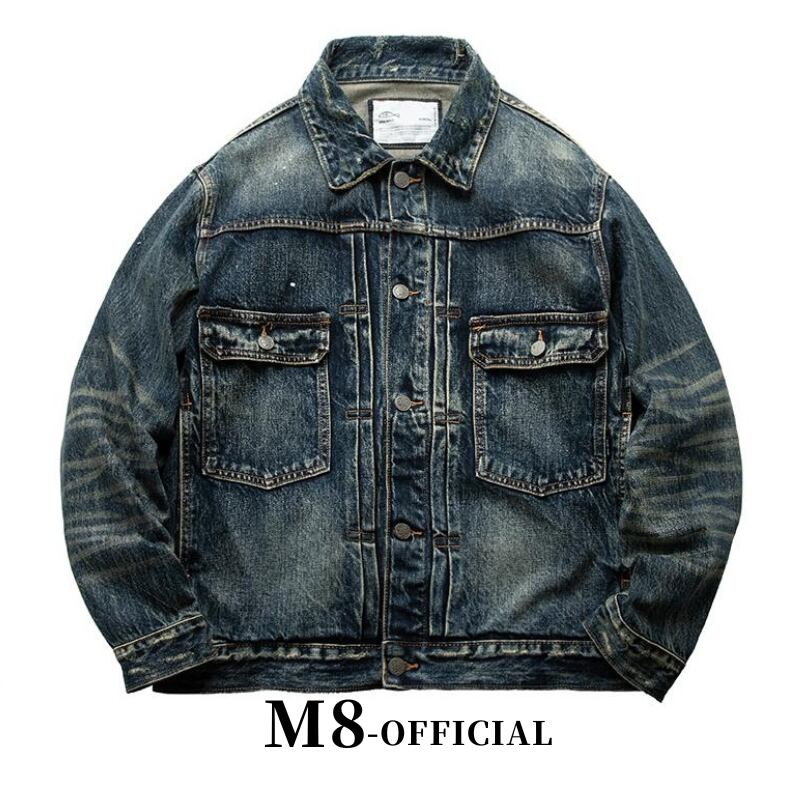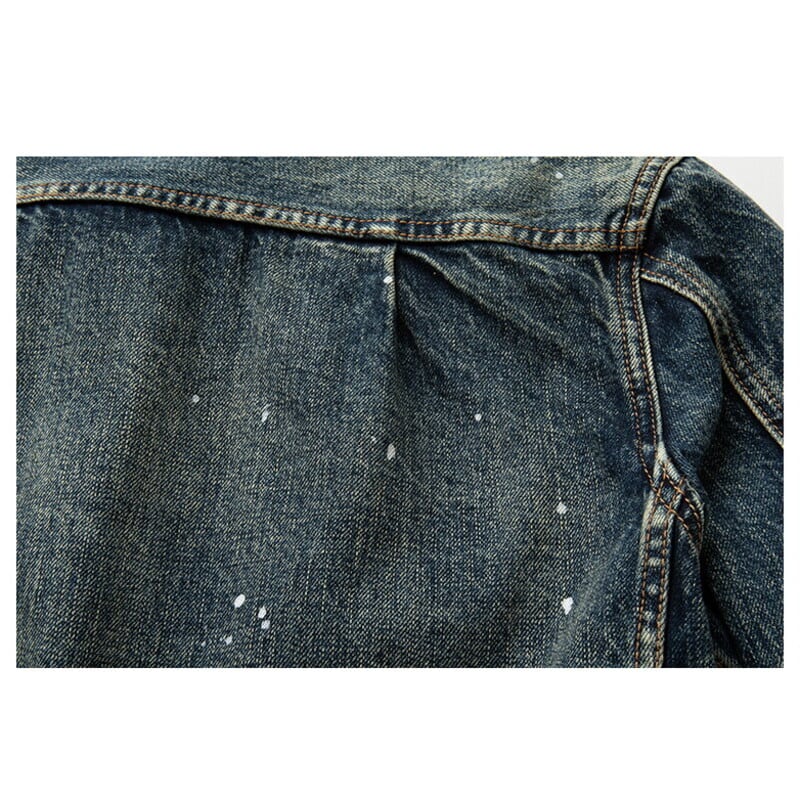 【商品管理番号】 M0457 【商品説明】 ヴィンテージ調のエイジング加工が施されたこなれた長袖デニムジャケットです。ステッチやペイントがアクセントになり、個性的な印象を与える一着。カジュアルなスタイルから、ちょっとしたお出かけまで幅広くコーディネートできるアイテムです。着こなしの幅を広げる、使い勝手の良いデニムジャケットです。 BLUE 【サイズ】 【M】肩幅:47cm / 胸囲:113cm / 着丈:62cm / 袖丈:58cm 【L】肩幅:48cm / 胸囲:115cm / 着丈:63cm / 袖丈:59cm 【XL】肩幅:49cm / 胸囲:117cm / 着丈:64cm / 袖丈:60cm 【2XL】肩幅:50cm / 胸囲:120cm / 着丈:65cm / 袖丈:61cm ※サイズは測り方により1-3㎝の誤差が生じる場合がございます。 【素材】 cotton100%