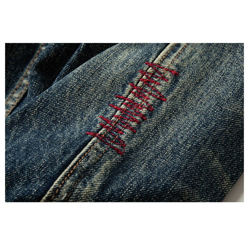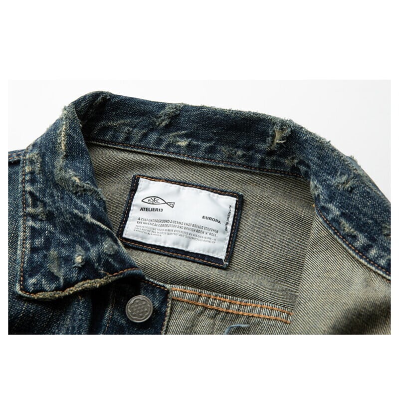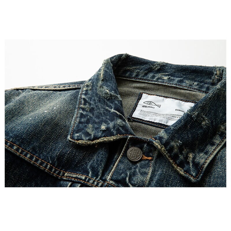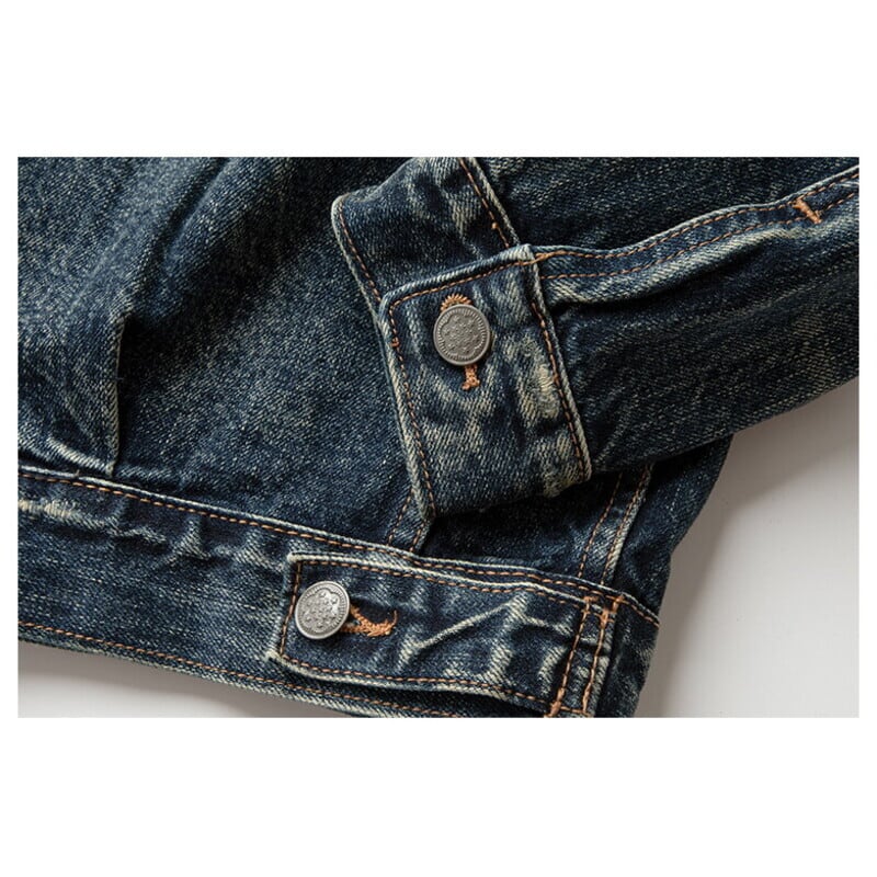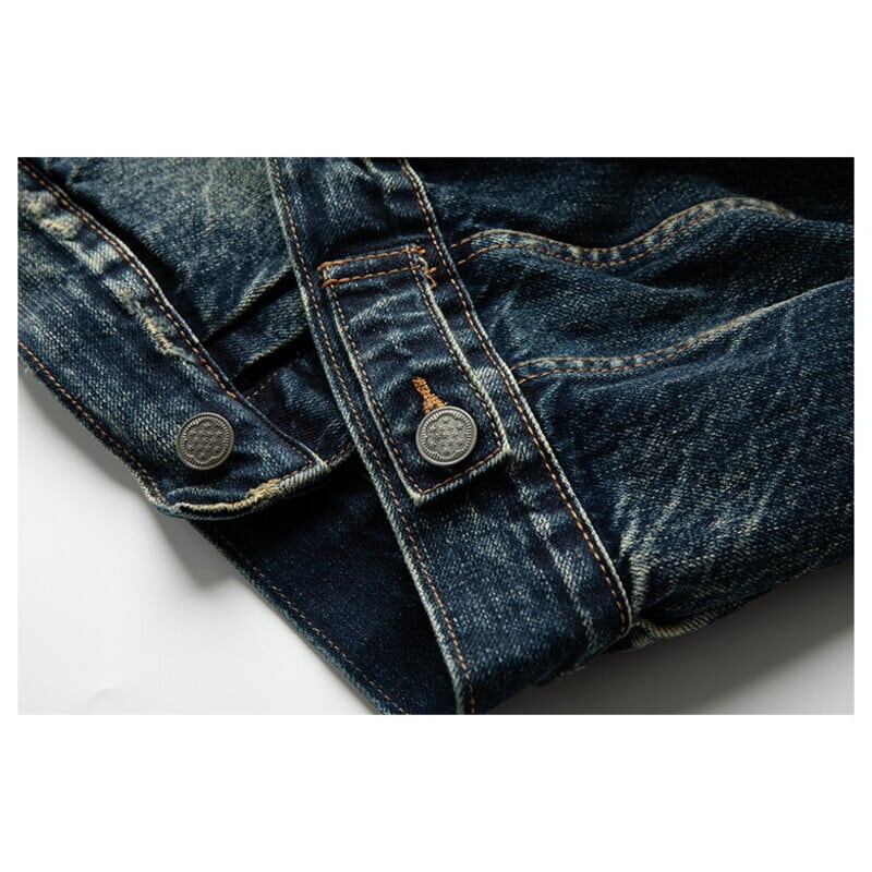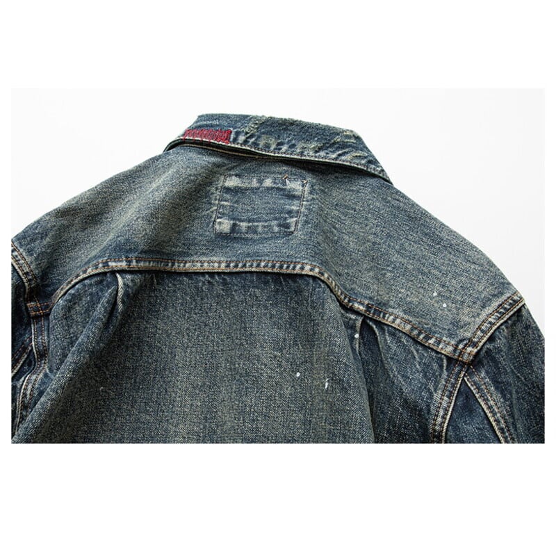 【商品管理番号】 M0457 【商品説明】 ヴィンテージ調のエイジング加工が施されたこなれた長袖デニムジャケットです。ステッチやペイントがアクセントになり、個性的な印象を与える一着。カジュアルなスタイルから、ちょっとしたお出かけまで幅広くコーディネートできるアイテムです。着こなしの幅を広げる、使い勝手の良いデニムジャケットです。 BLUE 【サイズ】 【M】肩幅:47cm / 胸囲:113cm / 着丈:62cm / 袖丈:58cm 【L】肩幅:48cm / 胸囲:115cm / 着丈:63cm / 袖丈:59cm 【XL】肩幅:49cm / 胸囲:117cm / 着丈:64cm / 袖丈:60cm 【2XL】肩幅:50cm / 胸囲:120cm / 着丈:65cm / 袖丈:61cm ※サイズは測り方により1-3㎝の誤差が生じる場合がございます。 【素材】 cotton100%