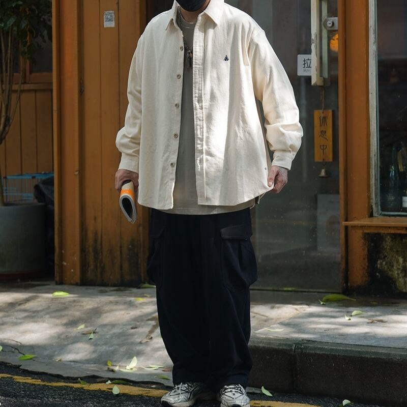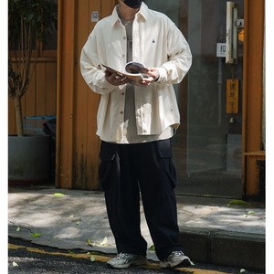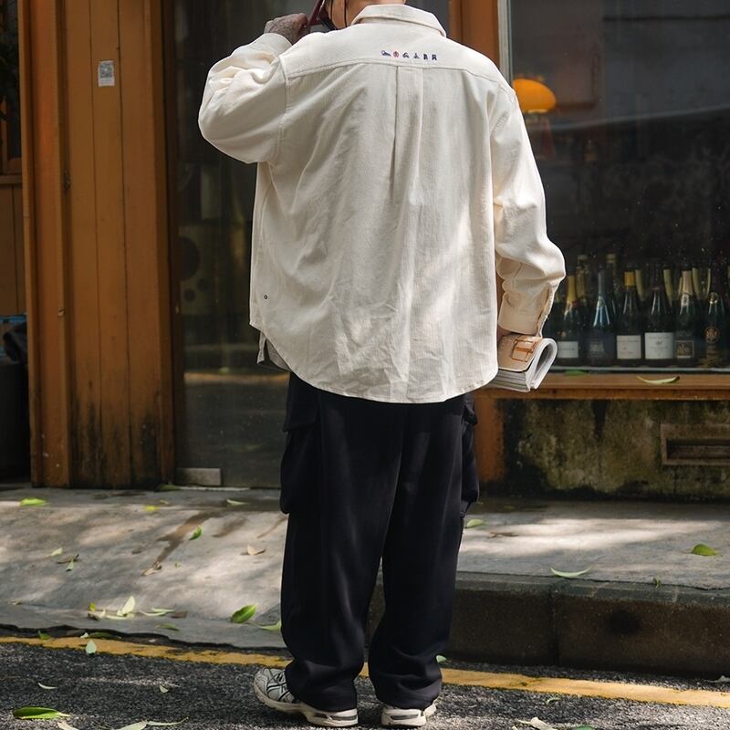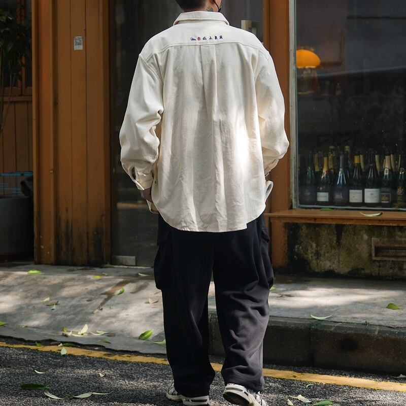 【商品管理番号】 M0468 【商品説明】 バックのヨークにあしらったポップな刺繍がアクセントのコーデュロイシャツが登場!リラックス感のあるシルエットが特徴で、カジュアルなのにどこかオシャレな一着です。デイリーコーデはもちろん、友達とのお出かけシーンにもぴったりで、着回し力が非常に高いアイテムです。お好きなカラーであなたらしいスタイルを楽しんでください。 OFF-WHITE/DARKGRAY 【サイズ】 【M】肩幅:55.6cm / 胸囲:128cm / 着丈:76.5cm / 袖丈:56cm 【L】肩幅:56.8cm / 胸囲:132cm / 着丈:78.5cm / 袖丈:57.5cm 【XL】肩幅:58cm / 胸囲:136cm / 着丈:80.5cm / 袖丈:59cm 【2XL】肩幅:59.2cm / 胸囲:140cm / 着丈:82.5cm / 袖丈:60.5cm モデル身長:180㎝/体重:72.5㎏/着用サイズ:XLサイズ ※サイズは測り方により1-3㎝の誤差が生じる場合がございます。 【素材】 lyocell100%