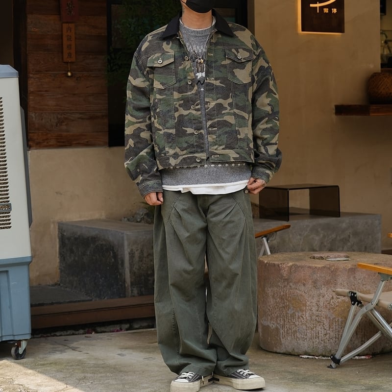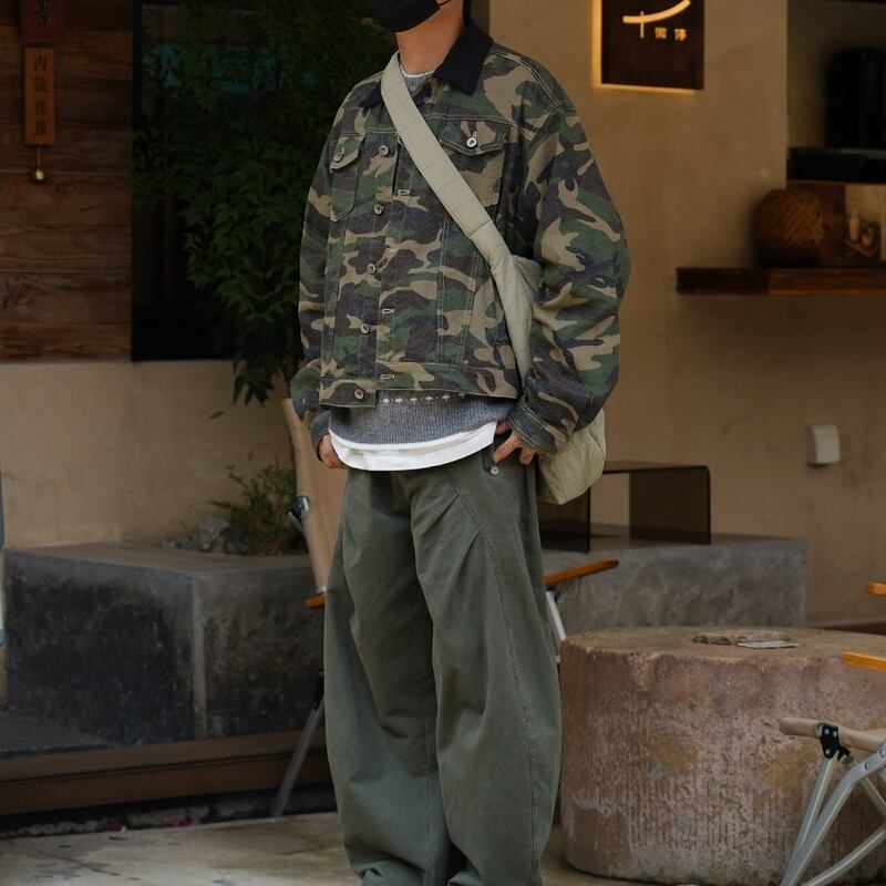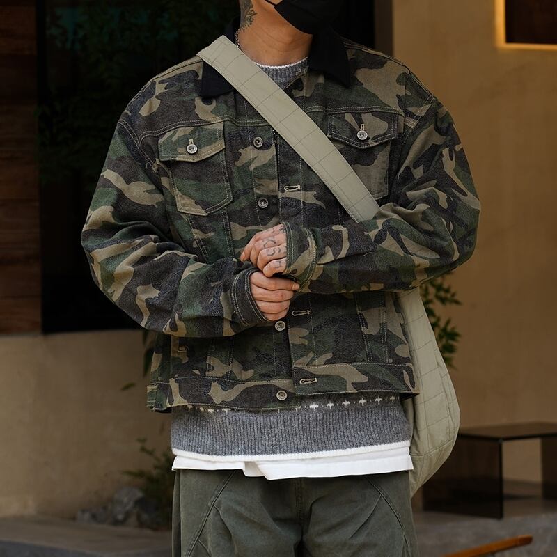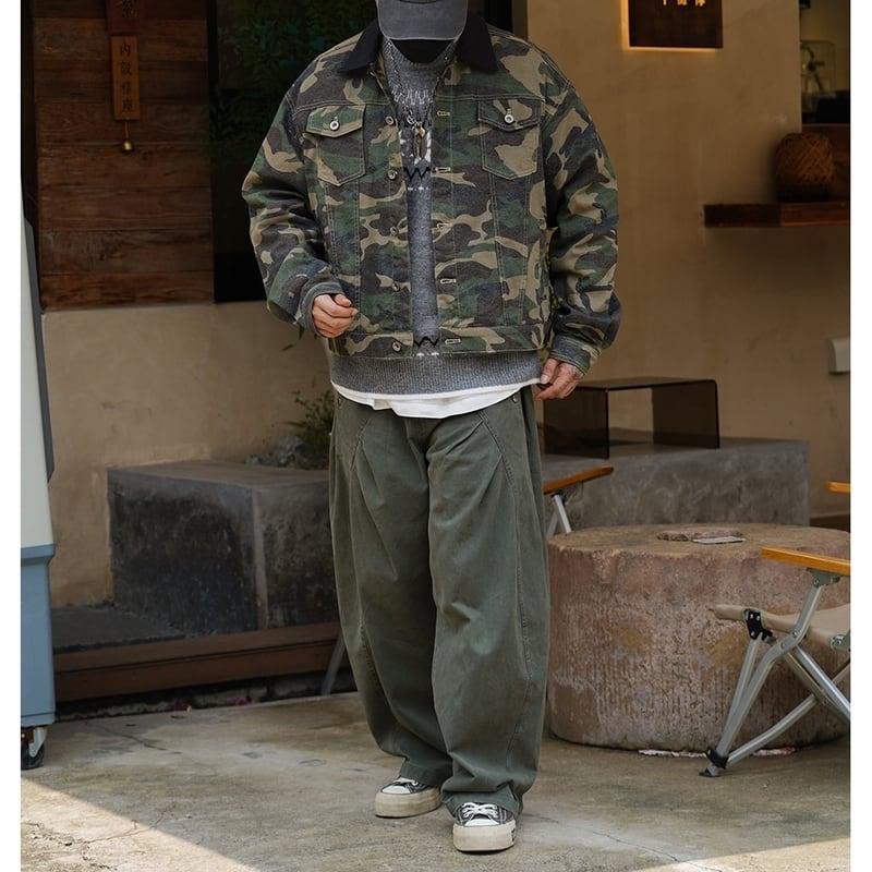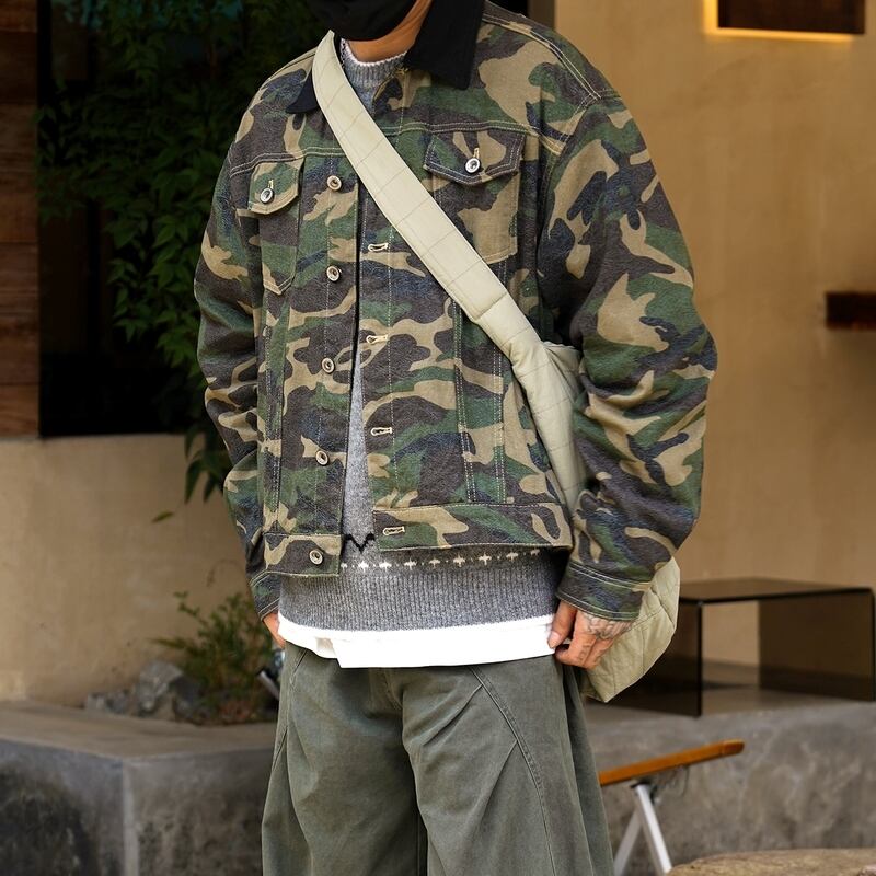 【商品管理番号】 M0470 【商品説明】 ヴィンテージ調の色味が絶妙なカモフラージュ柄ジャケットです。ツートーンにあしらったクレリックカラーが個性的な印象を与える一着。カジュアルなスタイルから、ちょっとしたお出かけまで幅広くコーディネートできるアイテムです。着こなしの幅を広げる、使い勝手の良いジャケットです。 GREEN 【サイズ】 【M】肩幅:56.5cm / 胸囲:117cm / 着丈:63cm / 袖丈:62cm 【L】肩幅:58cm / 胸囲:121cm / 着丈:64cm / 袖丈:63cm 【XL】肩幅:59.5cm / 胸囲:125cm / 着丈:65cm / 袖丈:64cm 【2XL】肩幅:61cm / 胸囲:129cm / 着丈:66cm / 袖丈:65cm ※サイズは測り方により1-3㎝の誤差が生じる場合がございます。 【素材】 polyester98%/polyurethane2%
