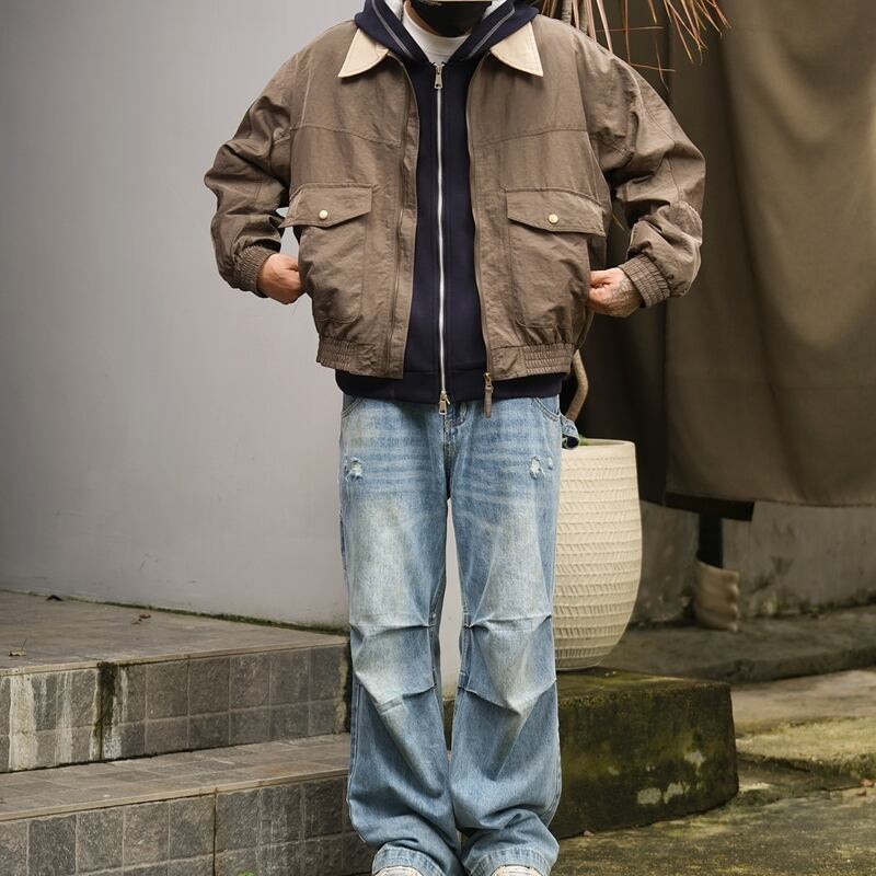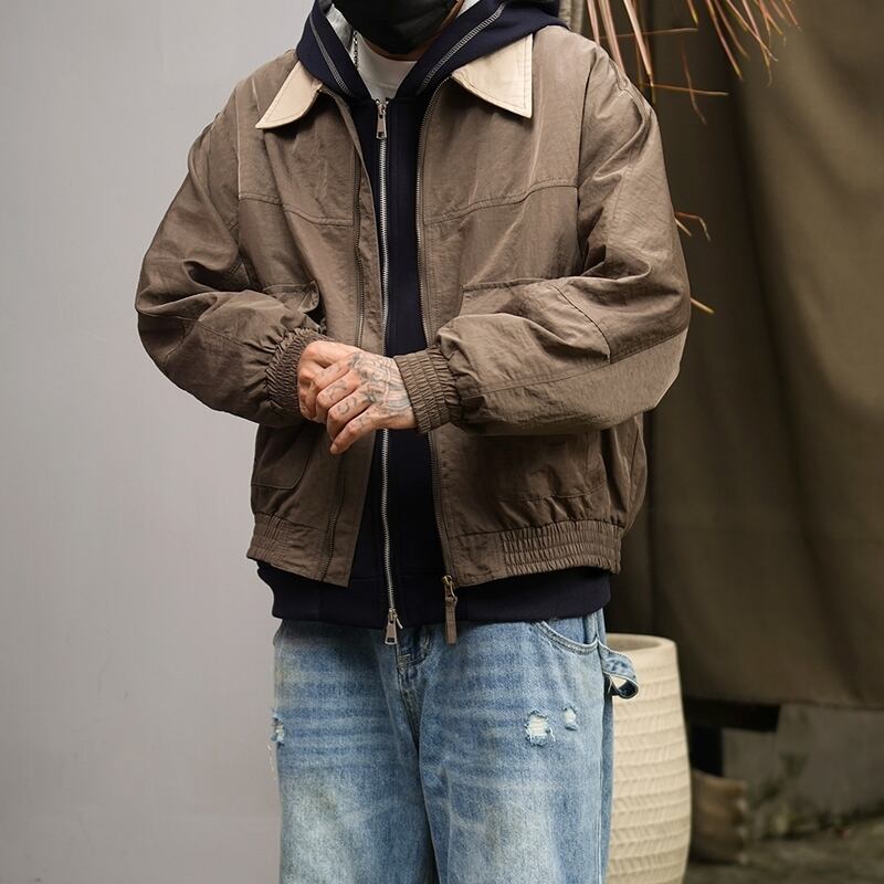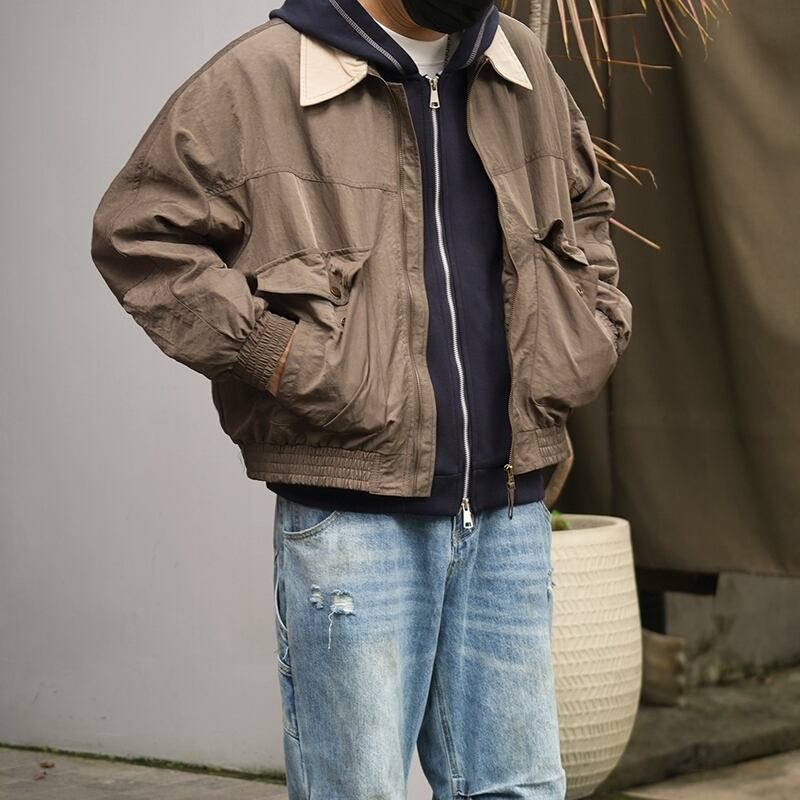 【商品管理番号】 M0471 【商品説明】 ヴィンテージ調の配色が絶妙なジップアップジャケットです。ツートーンにあしらったクレリックカラーが個性的な印象を与える一着。カジュアルなスタイルから、ちょっとしたお出かけまで幅広くコーディネートできるアイテムです。着こなしの幅を広げる、使い勝手の良いジャケットです。 ARMYGREEN/BROWNGREEN 【サイズ】 【M】胸囲:134cm / 着丈:67cm / 袖丈:77cm 【L】胸囲:138cm / 着丈:69cm / 袖丈:78.5cm 【XL】胸囲:142cm / 着丈:71cm / 袖丈:80cm 【2XL】胸囲:146cm / 着丈:73cm / 袖丈:81.5cm ※サイズは測り方により1-3㎝の誤差が生じる場合がございます。 【素材】 nylon100%