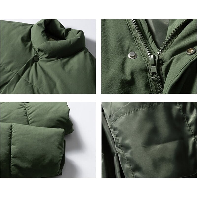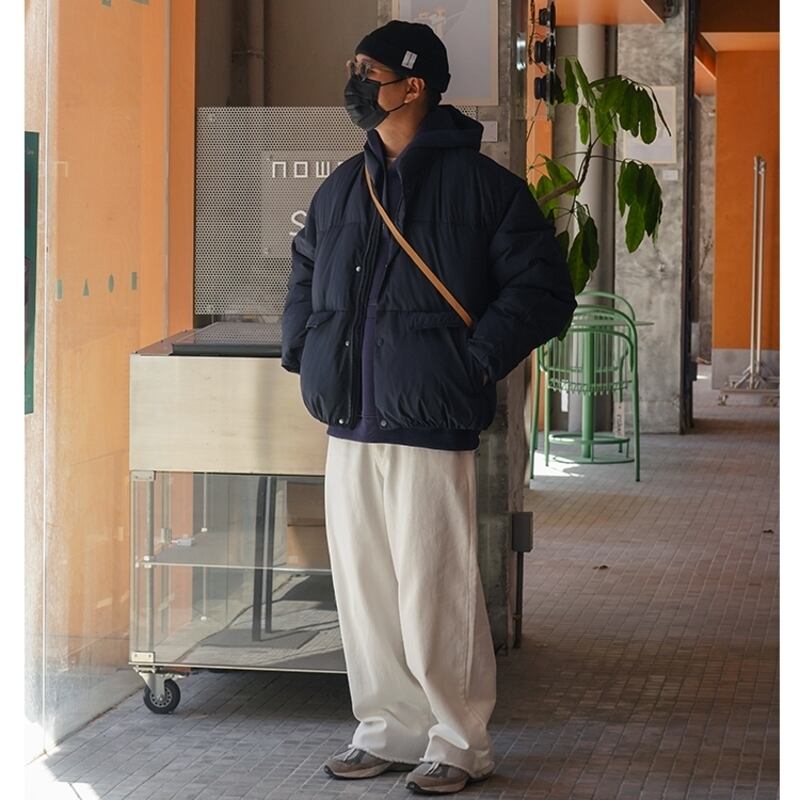 【商品管理番号】 M0476 【商品説明】 低めのスタンドカラーがこなれた、絶妙な色展開が魅力のダウンジャケットです。すっきりとしたシンプルなデザインがモードな印象を与える一着。カジュアルなスタイルから、ちょっとしたお出かけまで幅広くコーディネートできるアイテムです。着こなしの幅を広げる、使い勝手の良いジャケットです。 NAVY/GREEN 【サイズ】 【M】肩幅:59cm / 胸囲:134cm / 着丈:62cm / 袖丈:58cm 【L】肩幅:61cm / 胸囲:138cm / 着丈:64cm / 袖丈:59cm 【XL】肩幅:63cm / 胸囲:142cm / 着丈:66cm / 袖丈:60cm 【2XL】肩幅:65cm / 胸囲:146cm / 着丈:68cm / 袖丈:61cm モデル身長:177㎝/体重:65㎏/着用サイズ:Lサイズ ※サイズは測り方により1-3㎝の誤差が生じる場合がございます。 【素材】 polyester100%