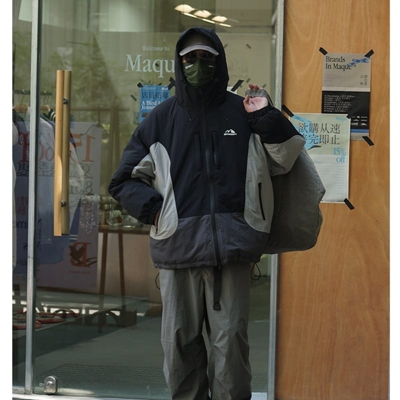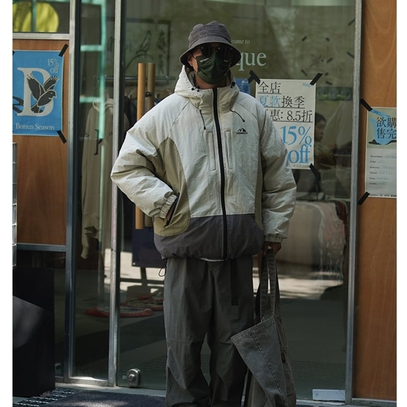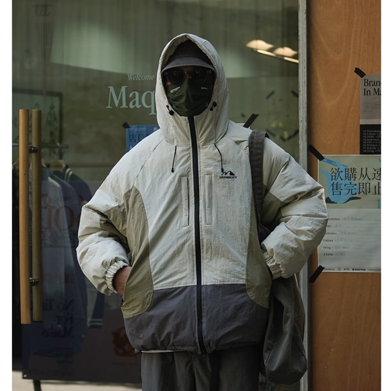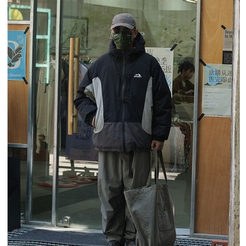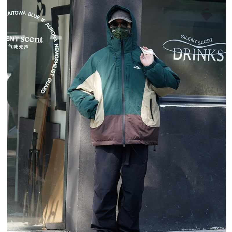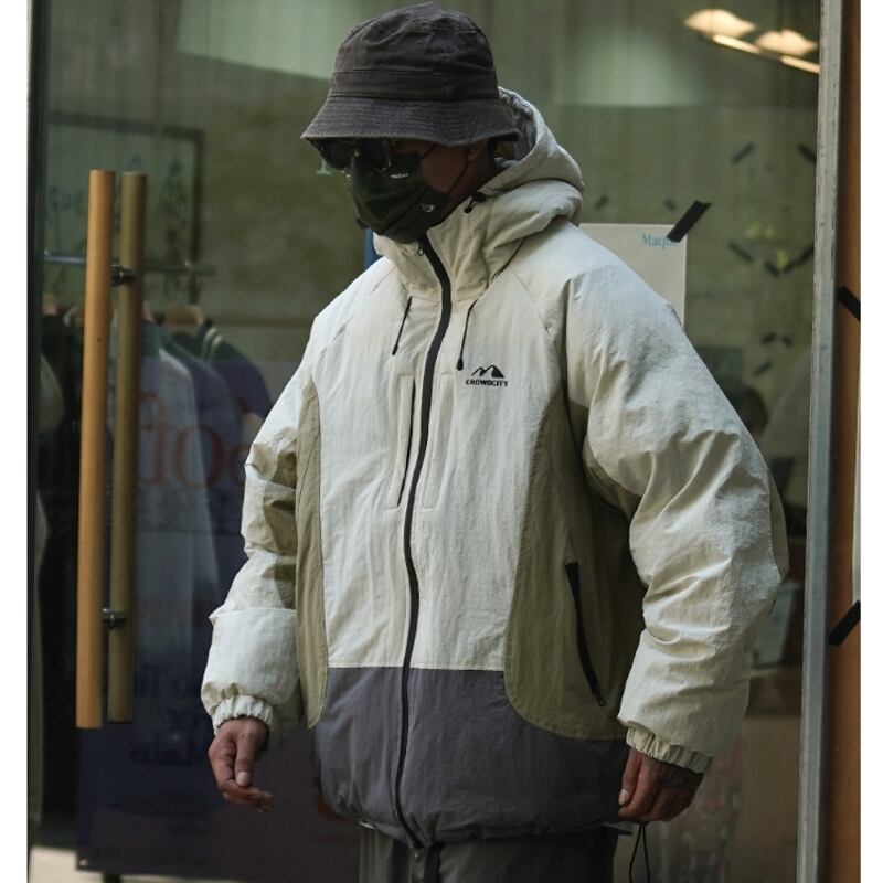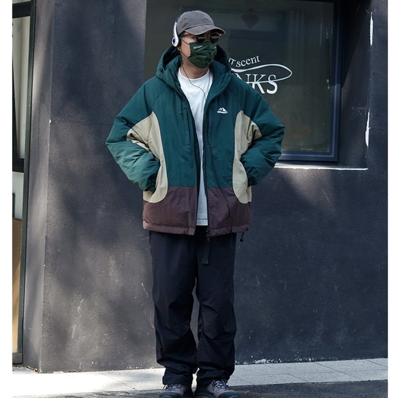 【商品管理番号】 M0478 【商品説明】 絶妙な切替配色がが魅力のフード付きのダウンジャケットです。ワイドなボリューム感がコーデのアクセントになる洗練された印象を与える一着。カジュアルなスタイルから、ちょっとしたお出かけまで幅広くコーディネートできるアイテムです。着こなしの幅を広げる、使い勝手の良いジャケットです。 BLACK/GREEN/BEIGE 【サイズ】 【M】胸囲:140cm / 着丈:77cm / 袖丈:80cm 【L】胸囲:144cm / 着丈:79cm / 袖丈:81.5m 【XL】胸囲:148cm / 着丈:80cm / 袖丈:83cm 【2XL】胸囲:152cm / 着丈:83cm / 袖丈:84.5cm ※サイズは測り方により1-3㎝の誤差が生じる場合がございます。 【素材】 nylon100%